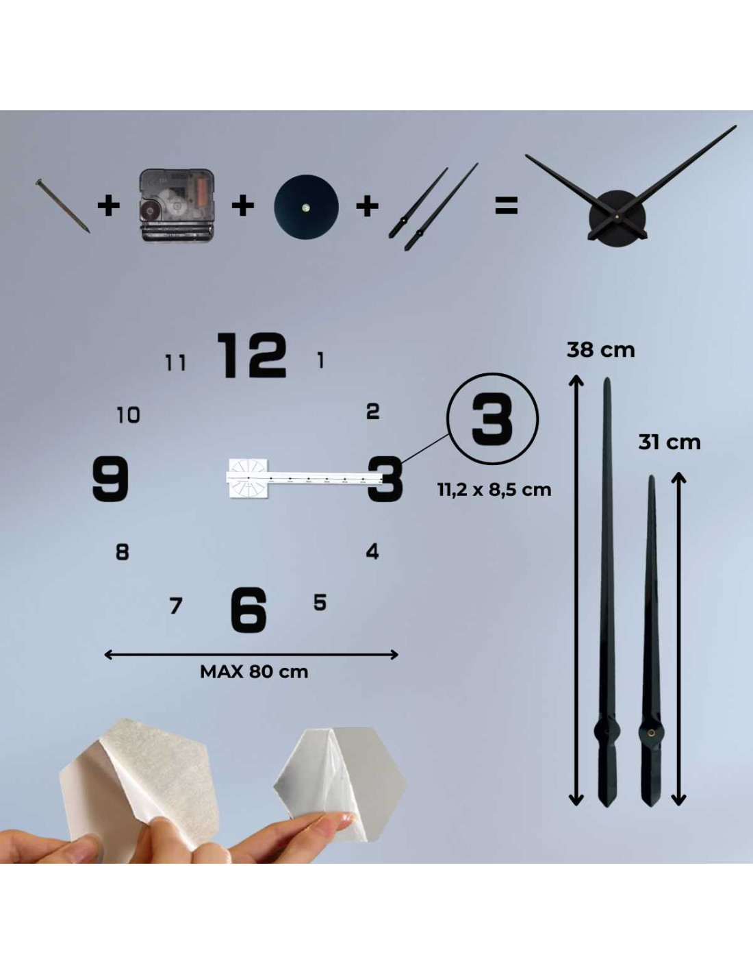 Discover a stylish wall clock with an adjustable diameter of up to 130 cm, which will stand out as a striking element in the living room, bedroom, office or entrance hall.