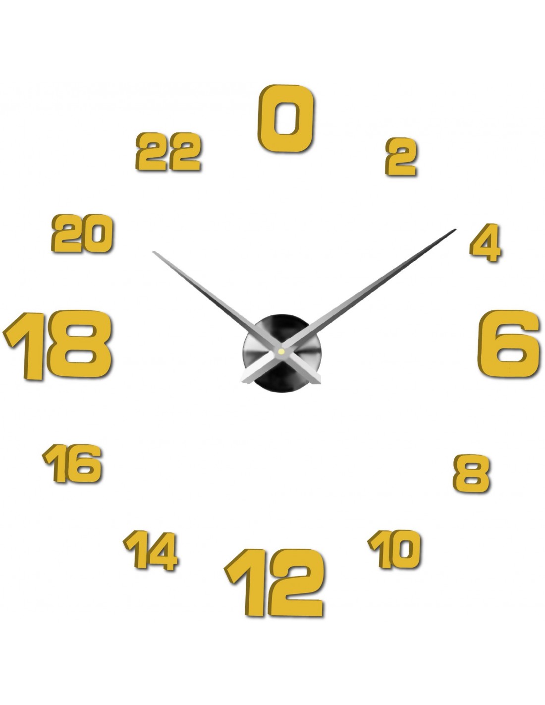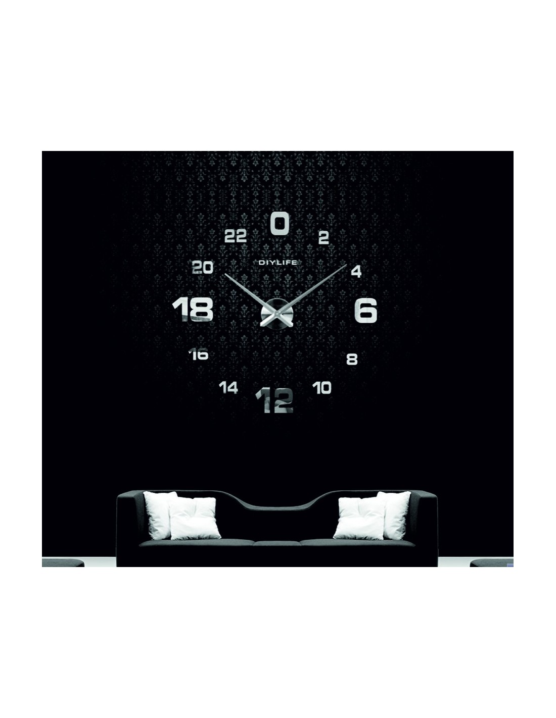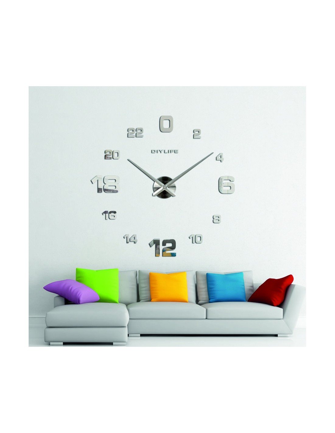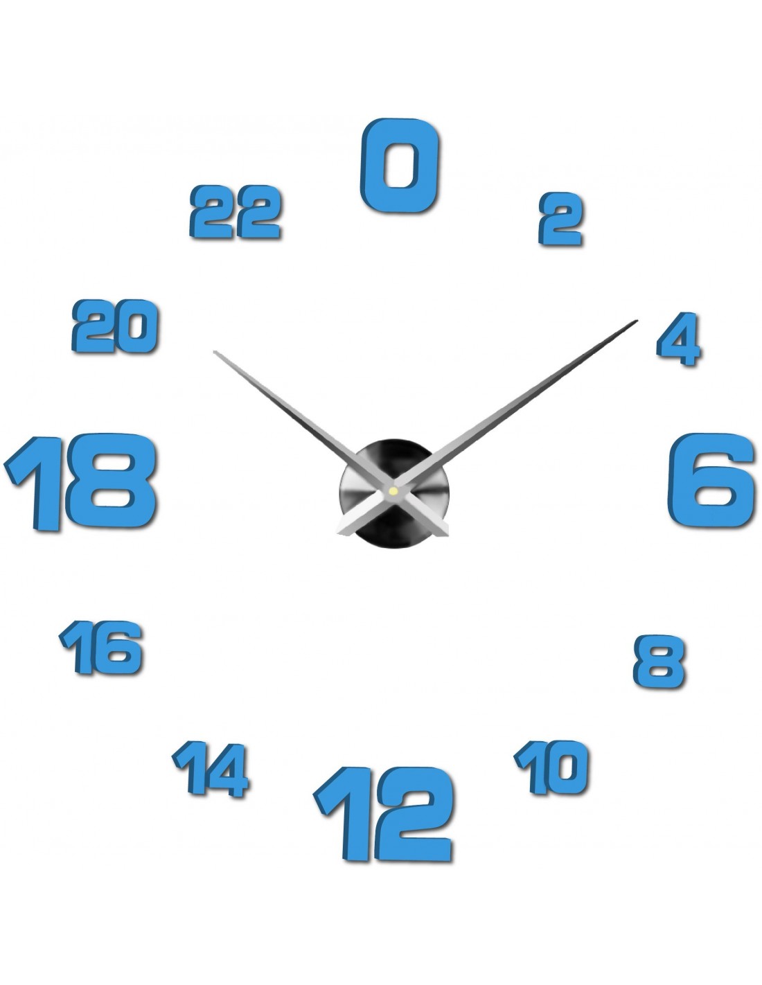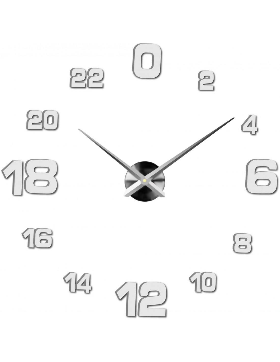 Minimum sticker dimensions: 800 x 800 mm, can be enlarged up to 1300 x 1300 mm. Clockwork dimensions: 100 x 100 mm. Hand length: 30 - 40 cm.