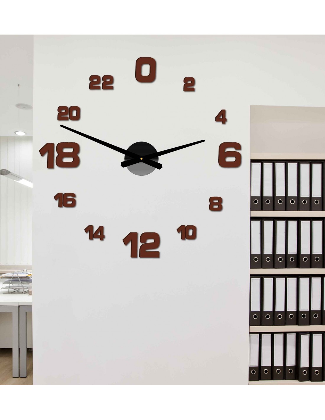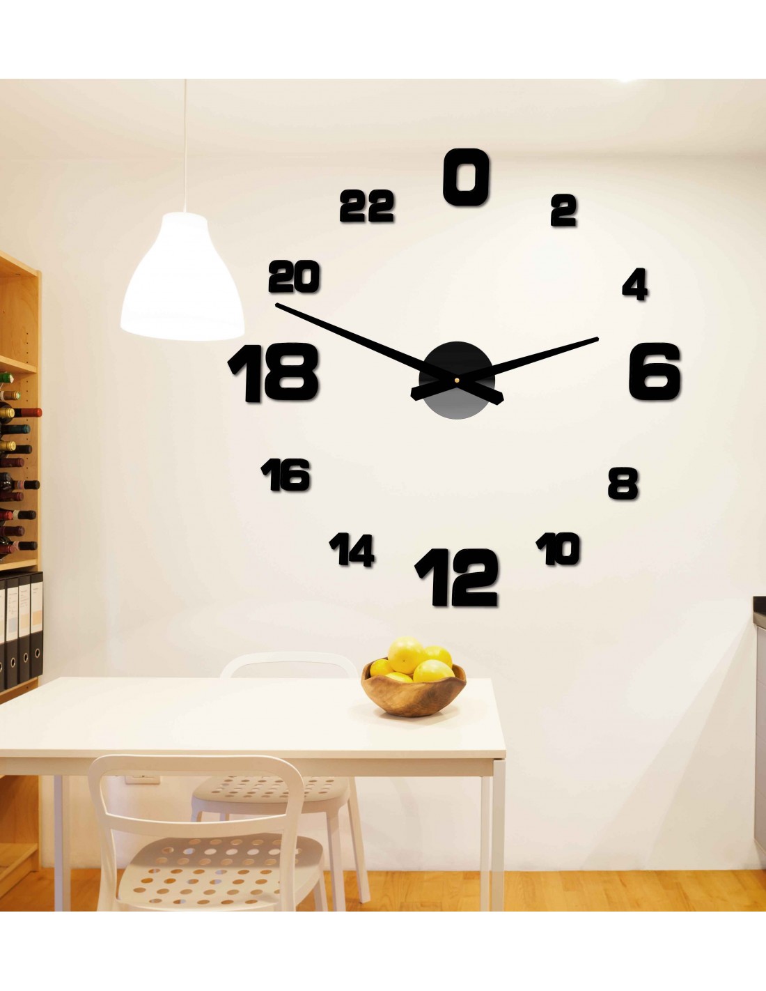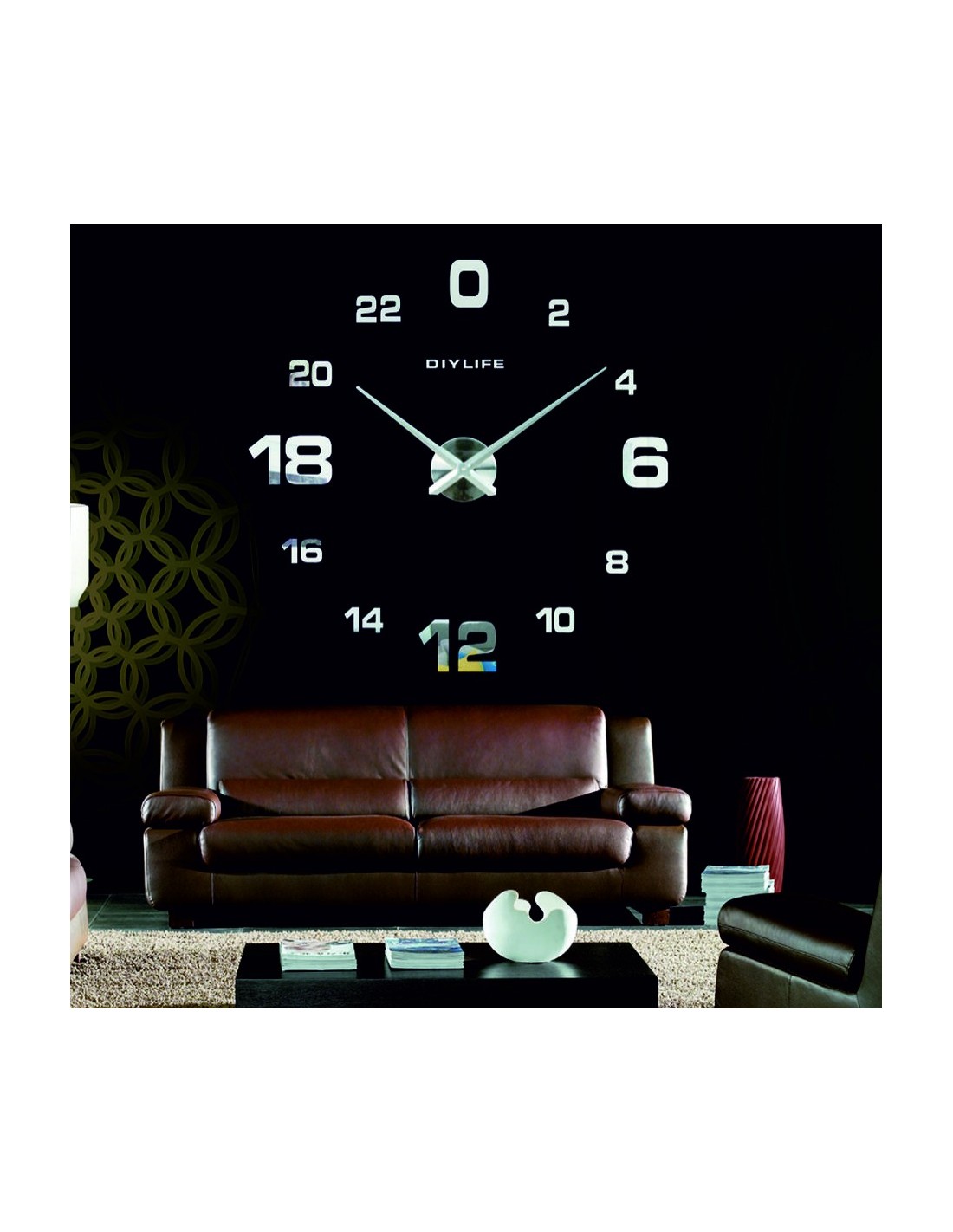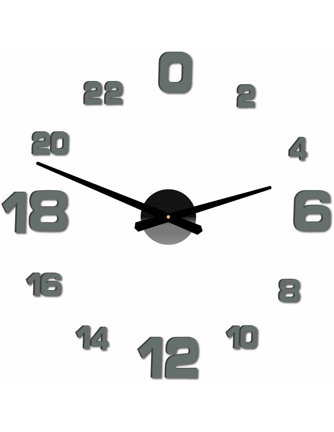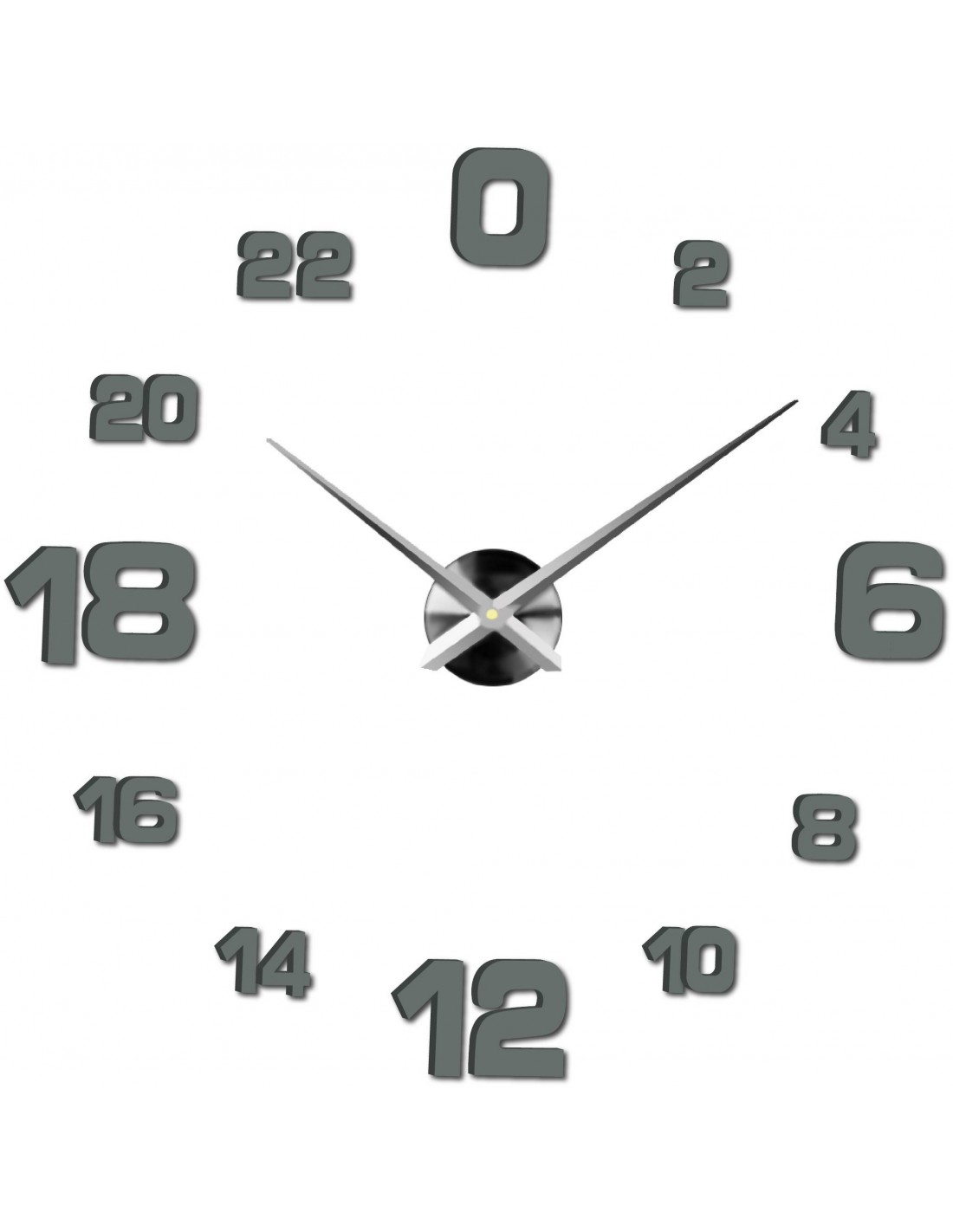 Minimum sticker dimensions: 800 x 800 mm, can be enlarged up to 1300 x 1300 mm. Clockwork dimensions: 100 x 100 mm. Hand length: 30 - 40 cm.