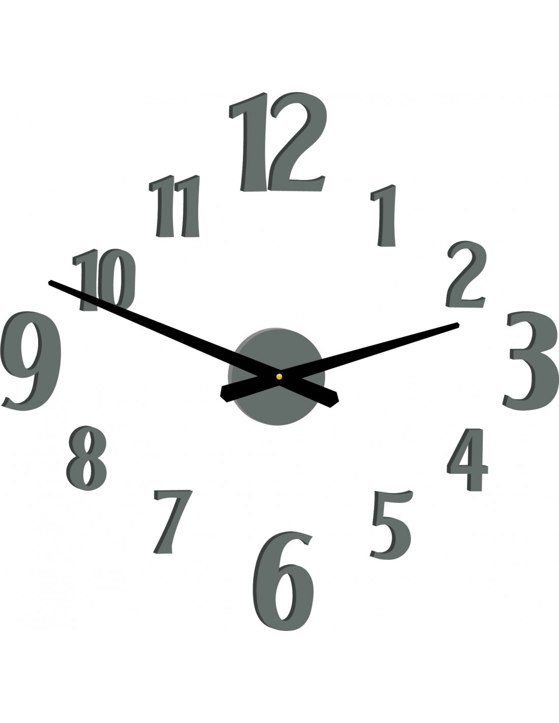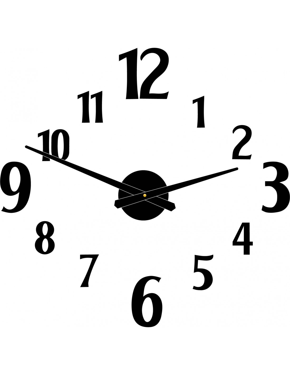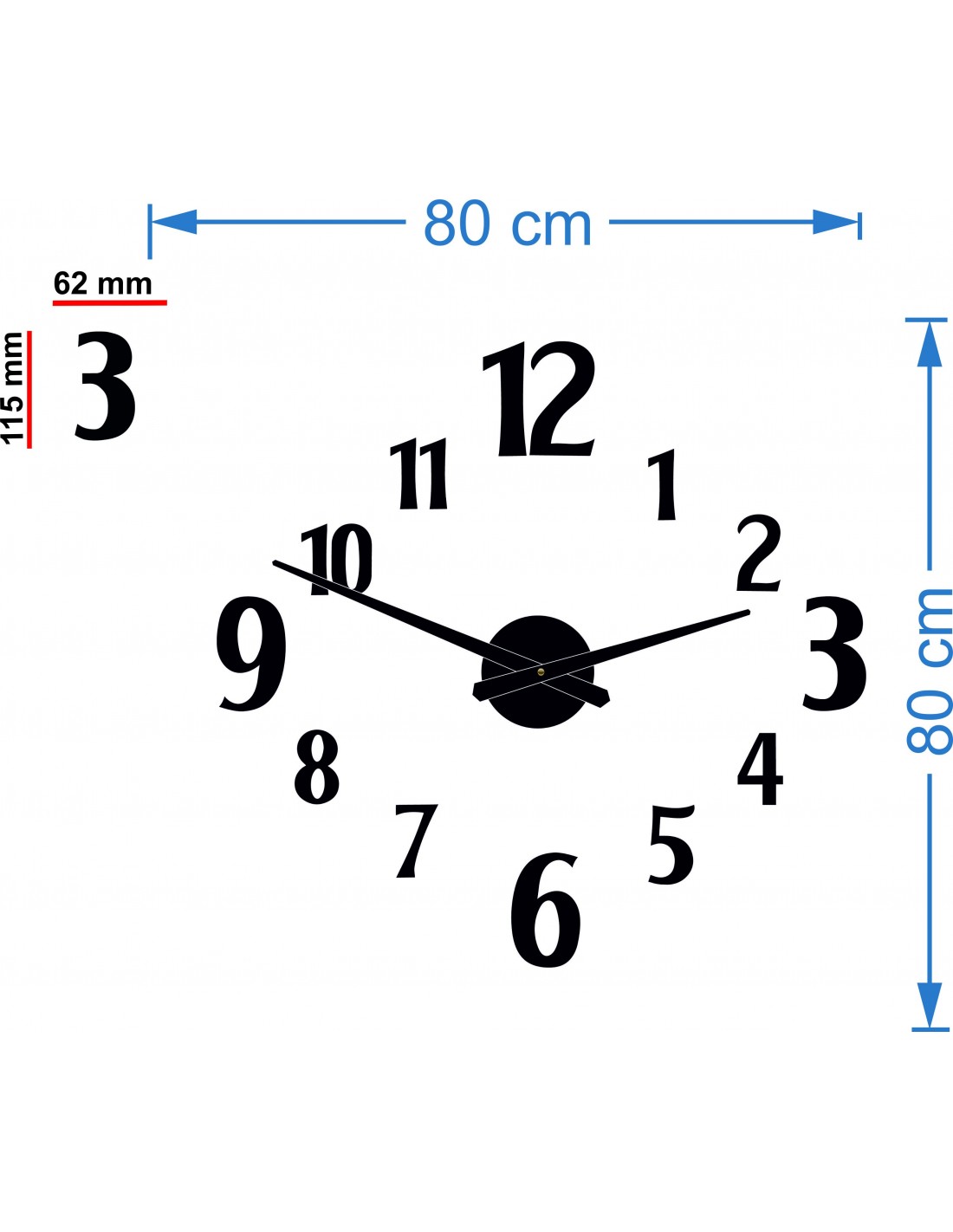 Dimensions of the clockwork: 100 x 100 mm. Length of the hands: 30 - 40 cm.