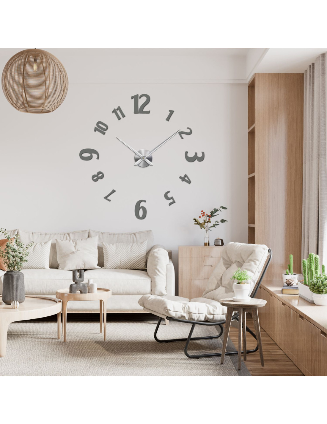 Large adhesive clocks with bold numbers and a metal center are the ideal solution for any modern interior.