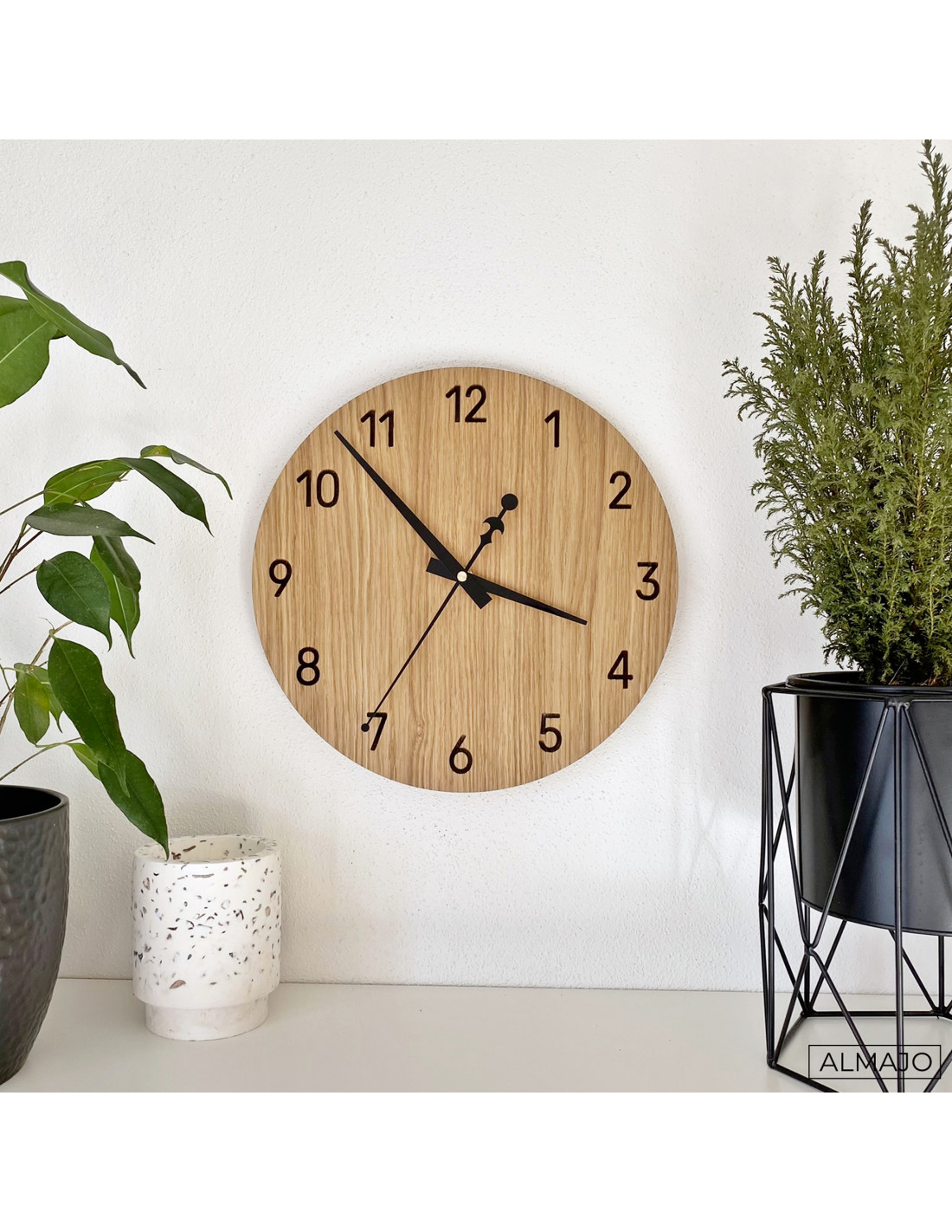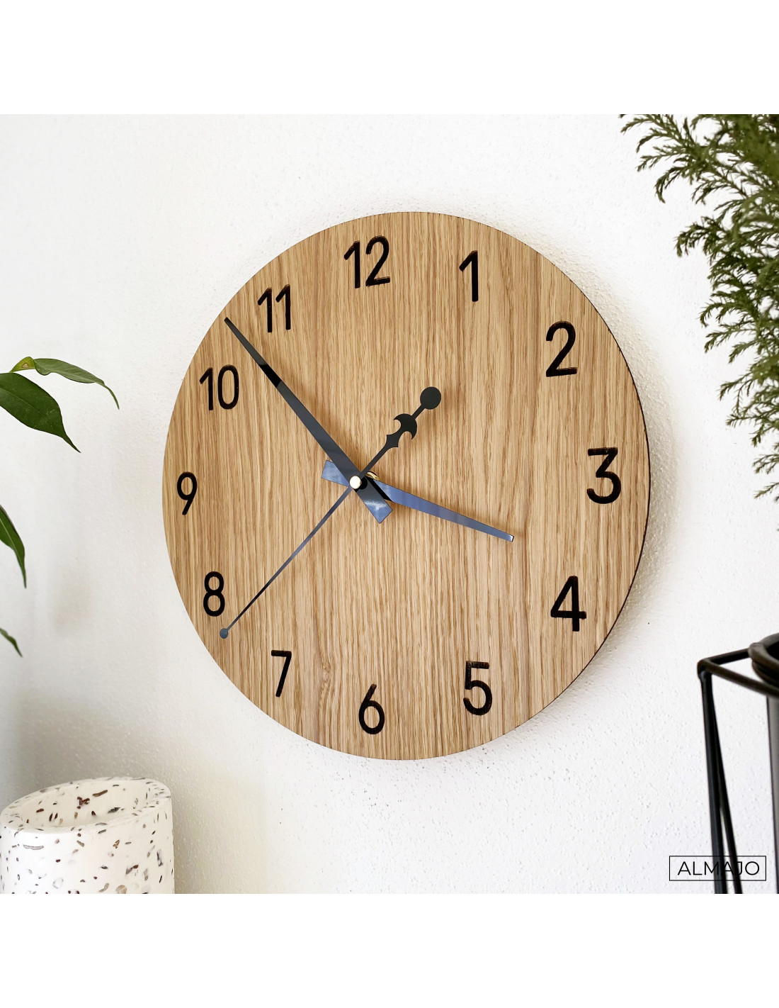 - Natural and elegant design: The combination of oak wood and black metal hands creates a modern minimalist style.