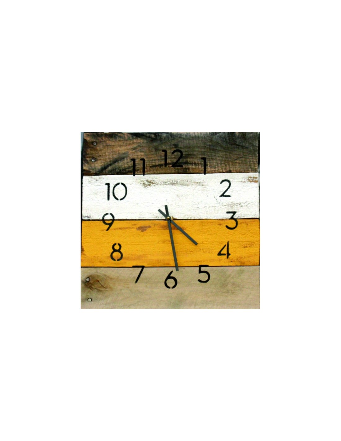 The production waiting time is around 14 days. Large wall clocks are made of softwood, boards. We produce wooden clocks in sizes from 400 mm to 1000 mm. The price, value of wooden clocks also varies depending on the size of the clock. We also make large longitudinal and transverse striped clocks that look very similar to the clock in the picture. If you have any questions about color designs for these new types of large wooden clocks, do not hesitate to ask us! We can produce almost any color, we can make almost any number. Model and font of your choice (each difference is charged). We can also add wedding date, quotes, phrases, and many other descriptions.
