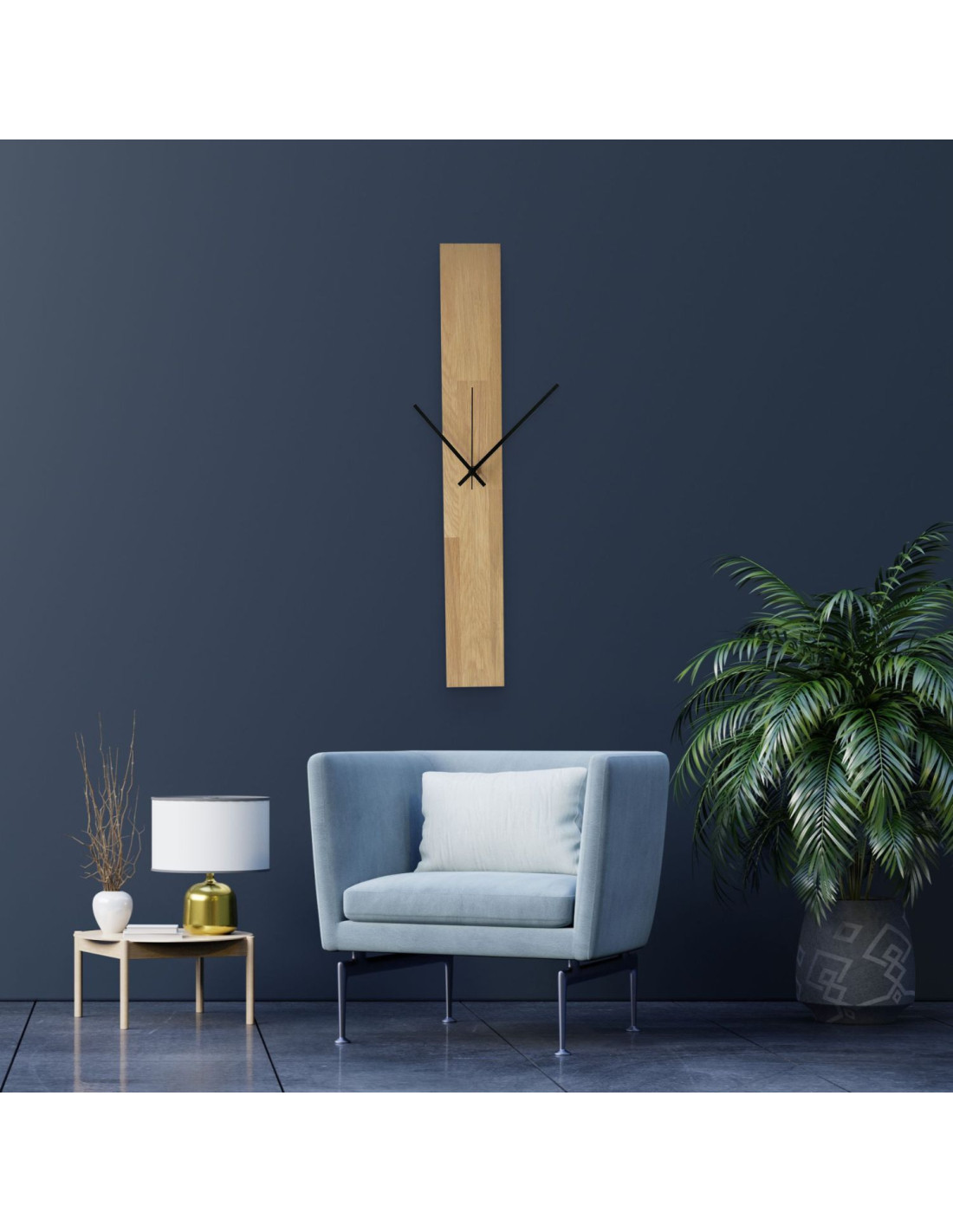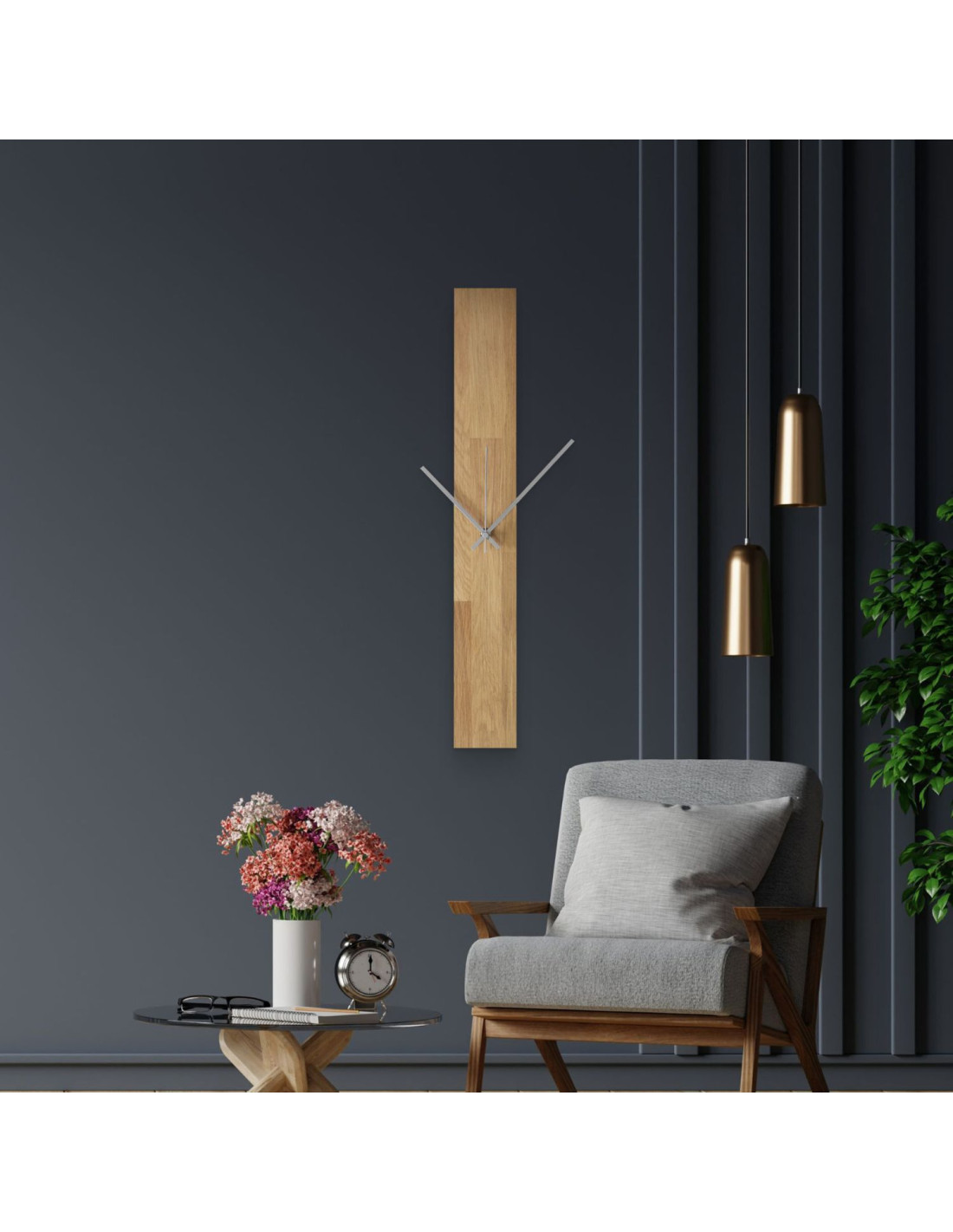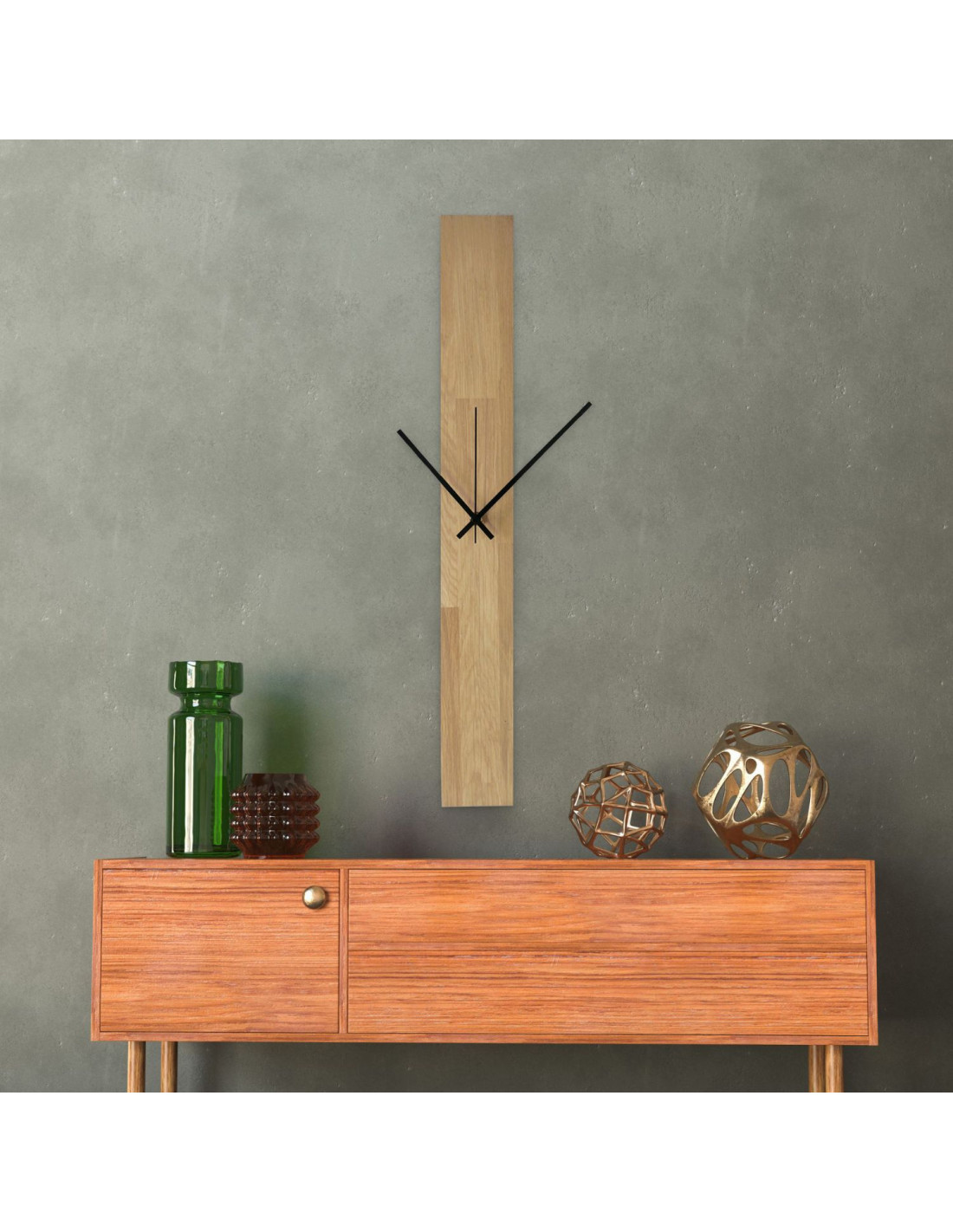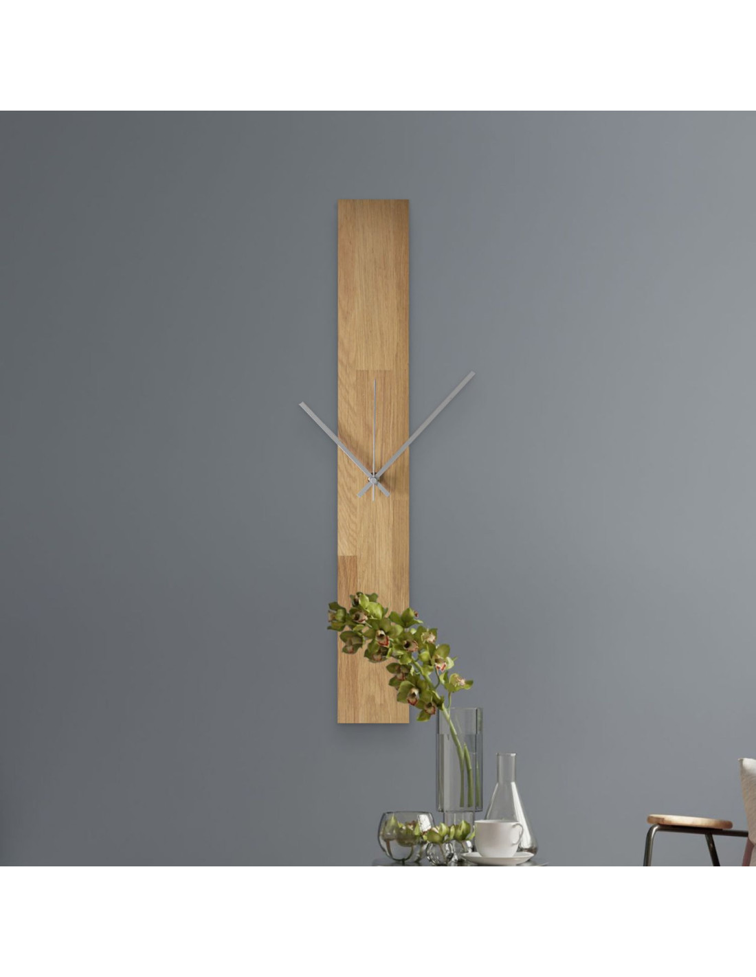 Minimalist Vertical Oak Wall Clock: Modern Handmade Wood Timepiece - OSMAN