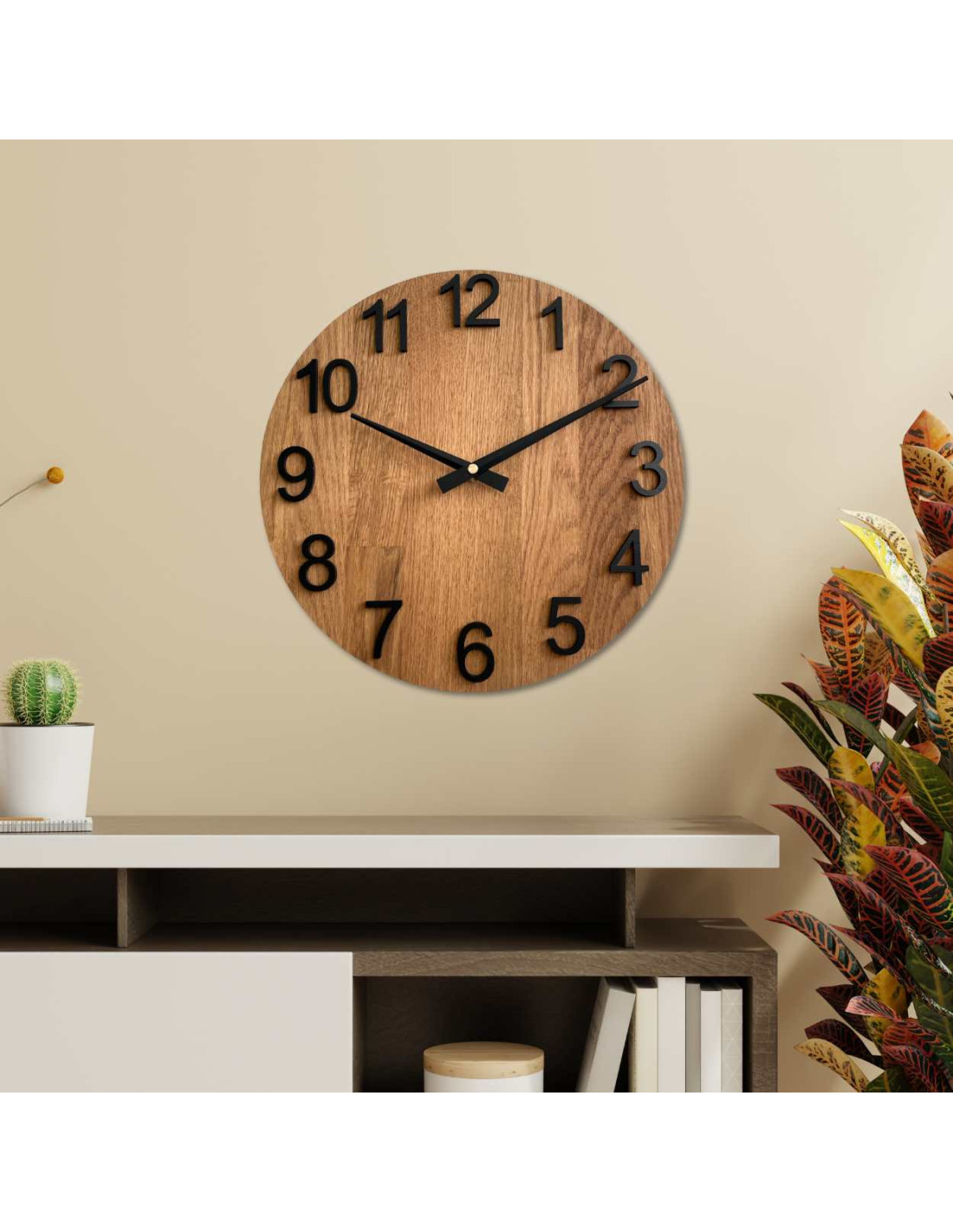 Wooden wall clock with large numbers | ROTREIU