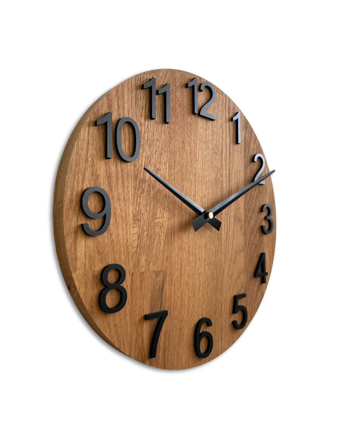 Each clock is made from solid oak panels, which are first precisely cut into the desired shape and size using CNC technology.
