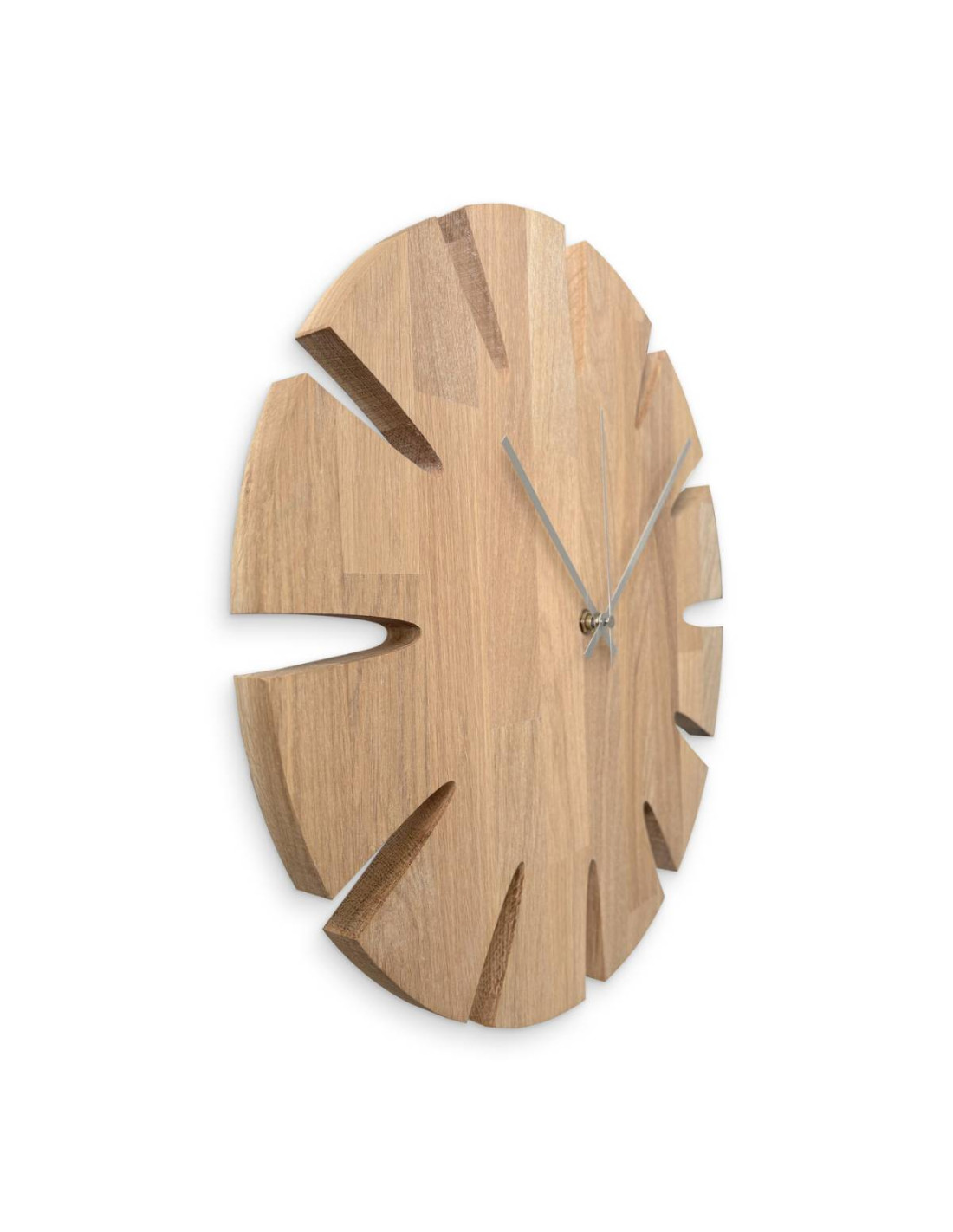 Each clock is made from solid oak panels, which are first precisely cut into the desired shape and size using CNC technology.
