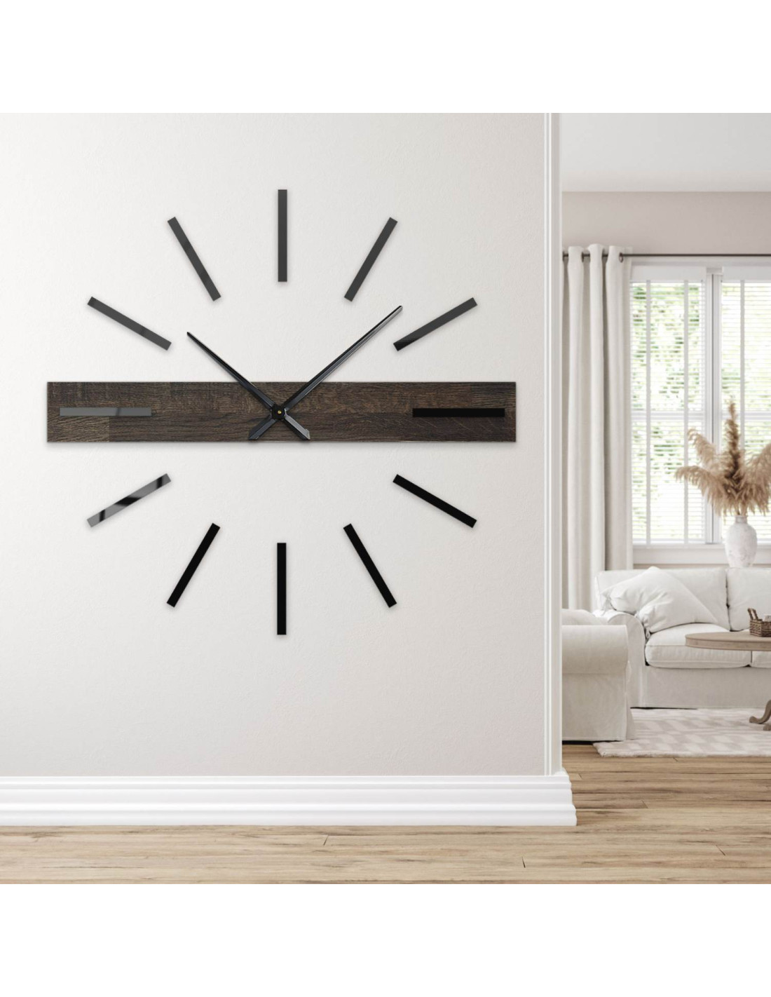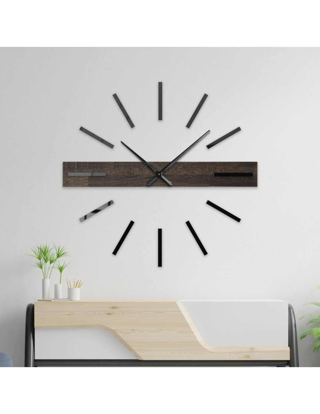 Elegant black plexiglass sticks and stylish metal hands create a modern contrast.