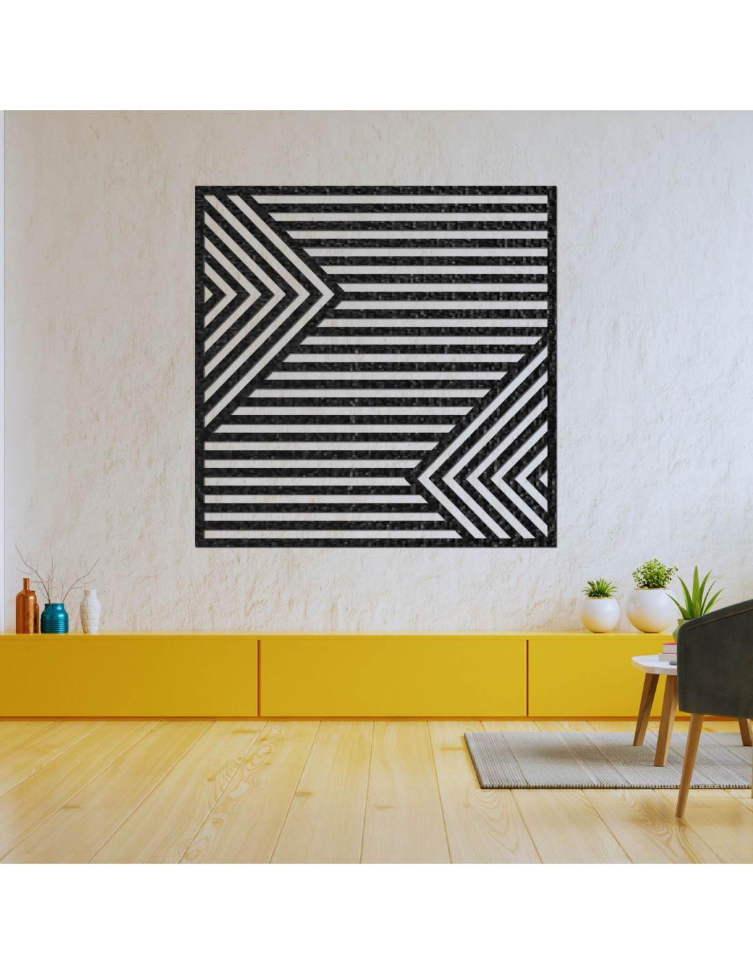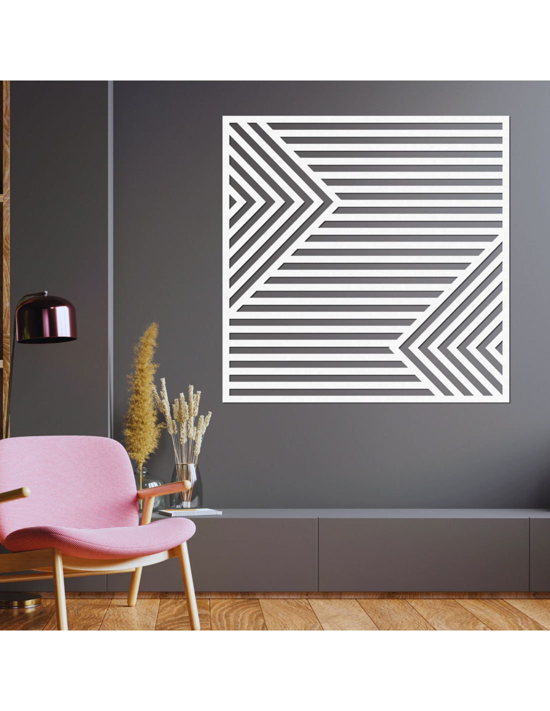 The LINEA painting represents a symbol of purity and harmony through geometric lines.