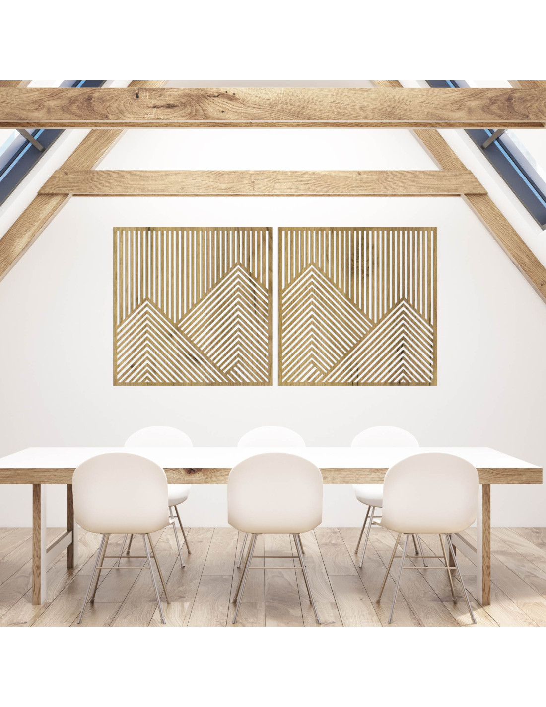 Wooden wall decoration with geometric mountain lines - set of 2 pieces