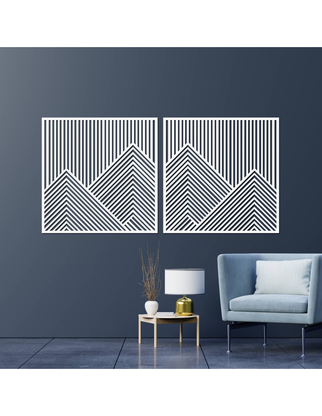 Wooden wall decoration with geometric mountain lines - set of 2 pieces