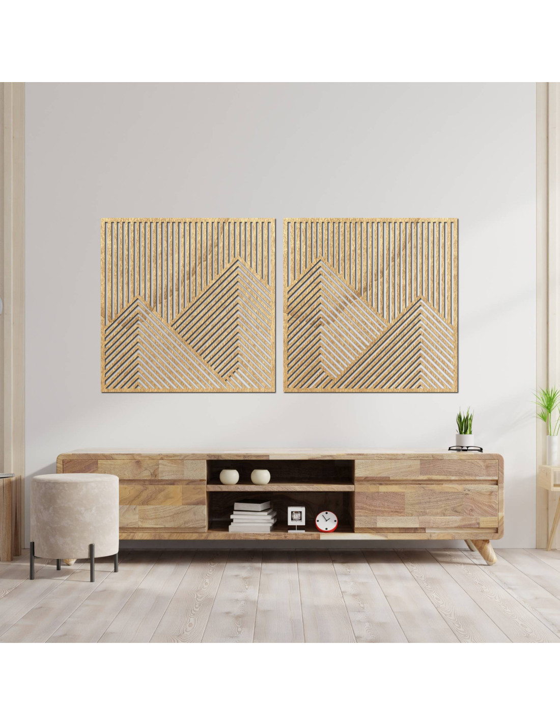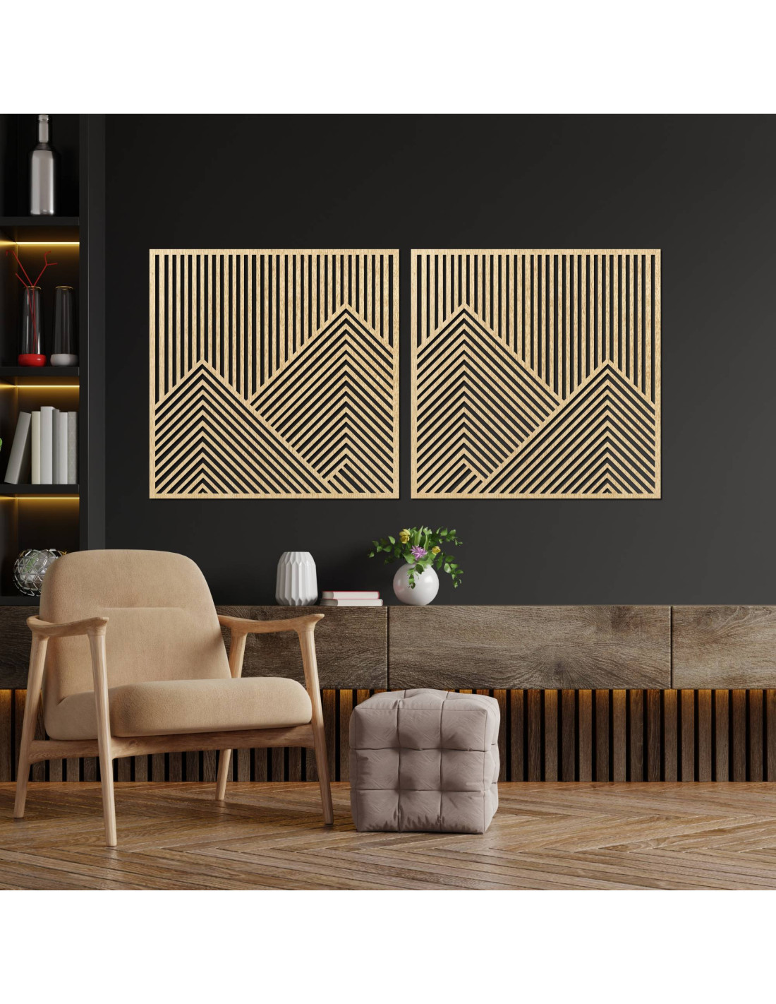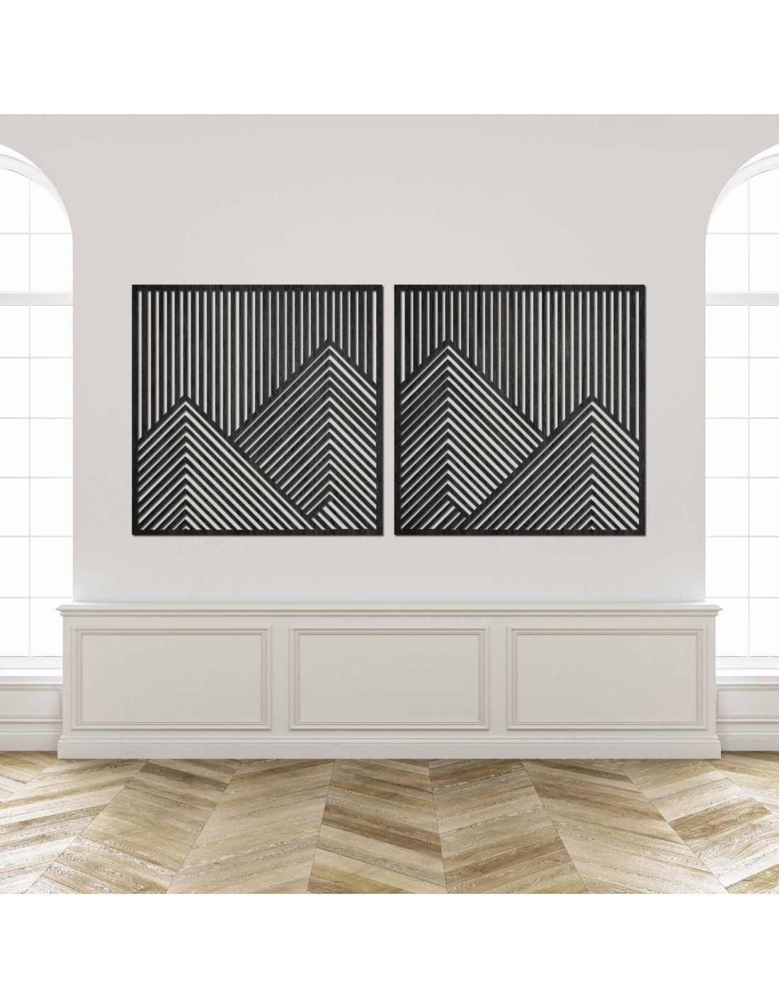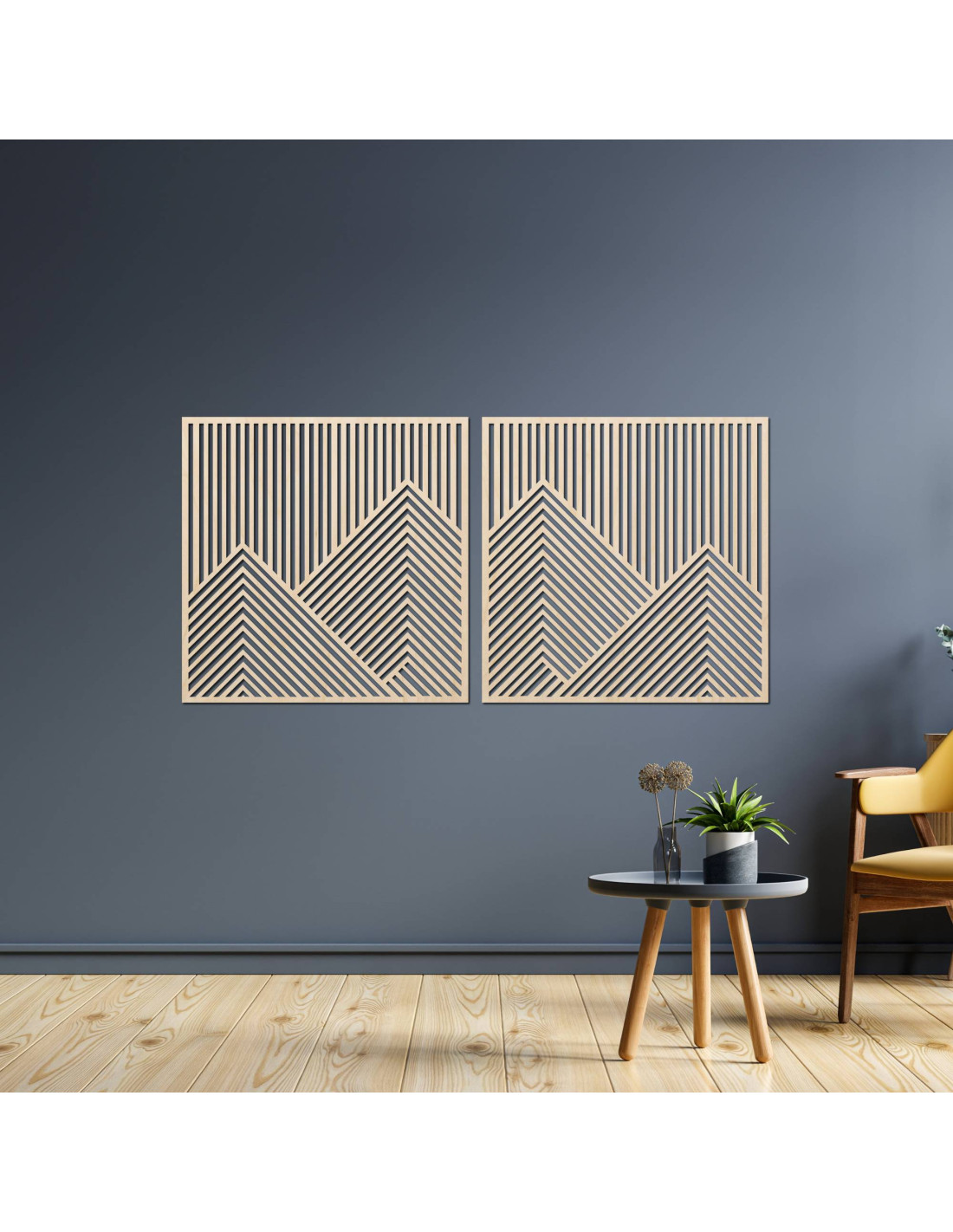 Wooden wall decoration with geometric mountain lines - set of 2 pieces