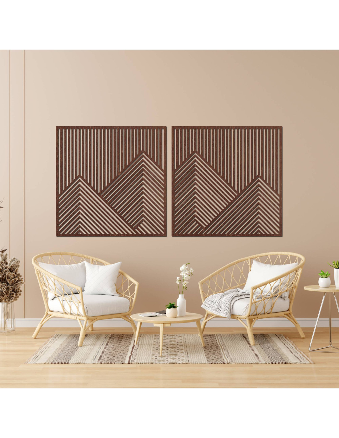 Minimalist wall decoration with mountains in a natural design