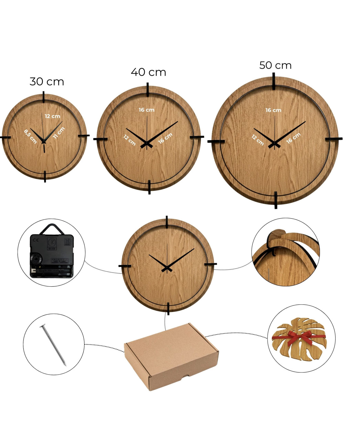 - Clock diameter: choose between 30 cm, 40 cm or 50 cm