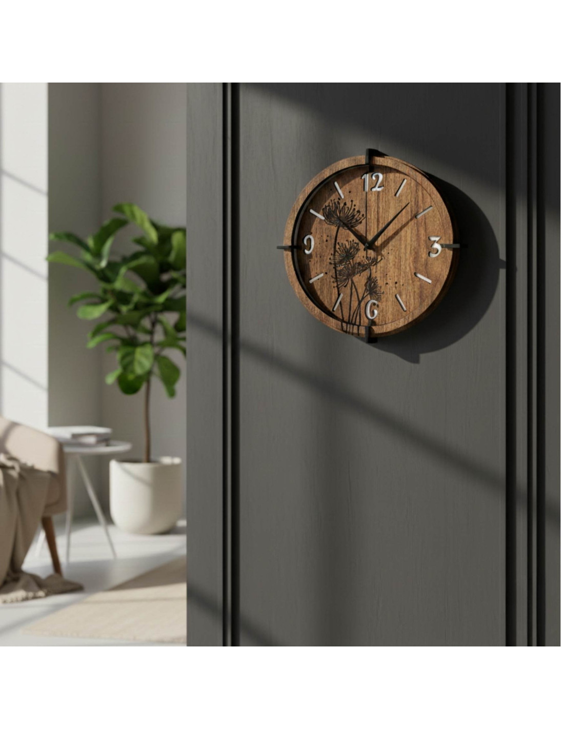 Wooden clock with a nature motif – silence and style in your home