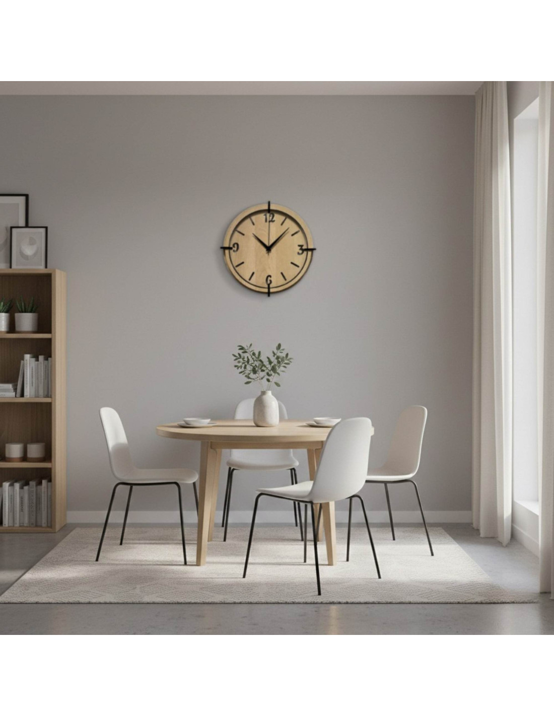 This wall clock made of HDF wood material combines modern material with honest craftsmanship.
