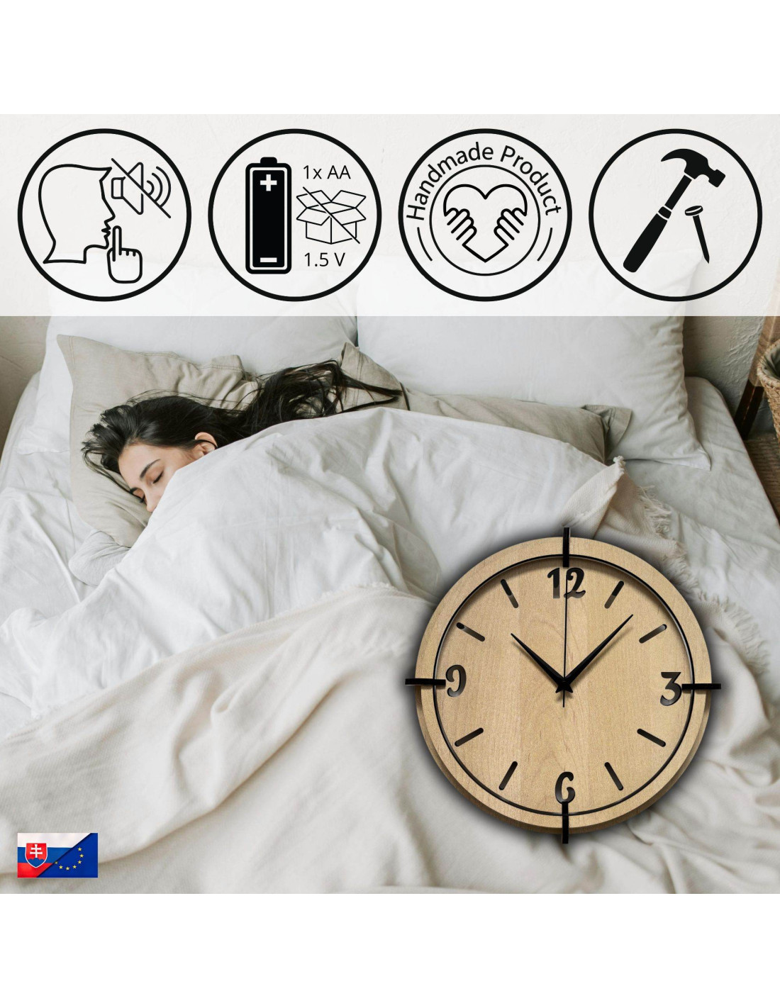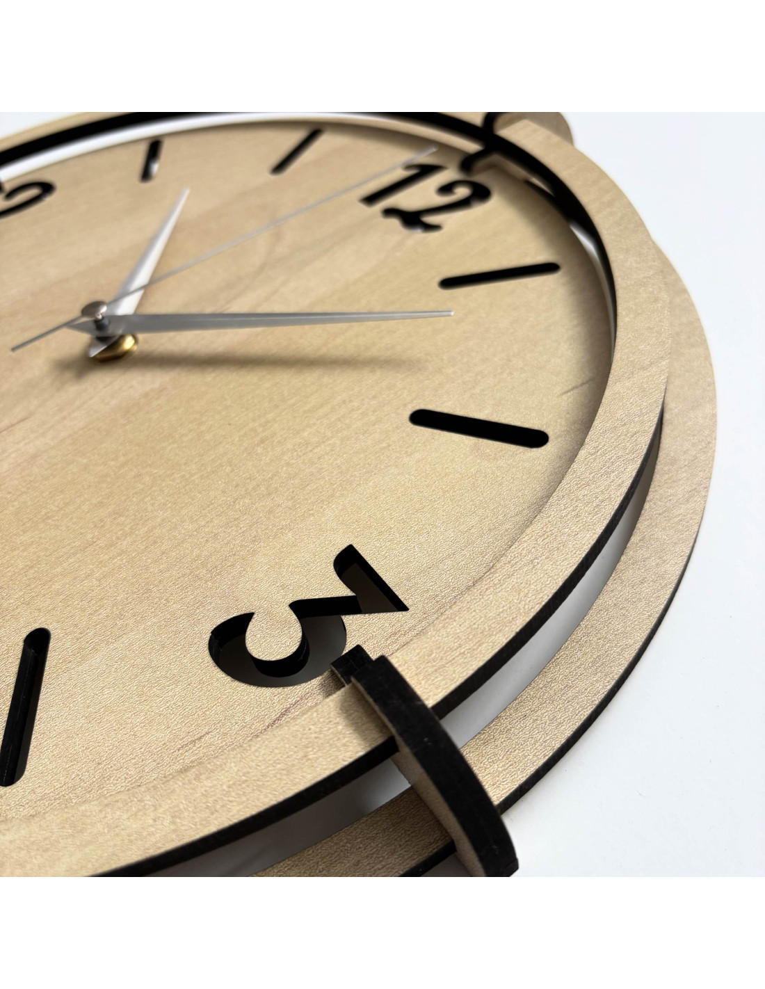 The clock is made of high-quality HDF board with a fine natural wood grain and precise multi-layer processing that creates an attractive 3D effect.