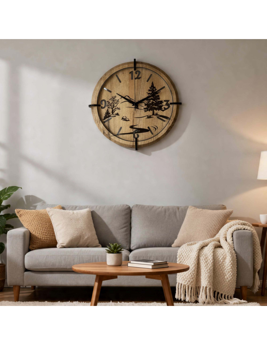 Modern wooden wall clocks with an original 3D natural landscape motif bring harmony and peace to the interior.