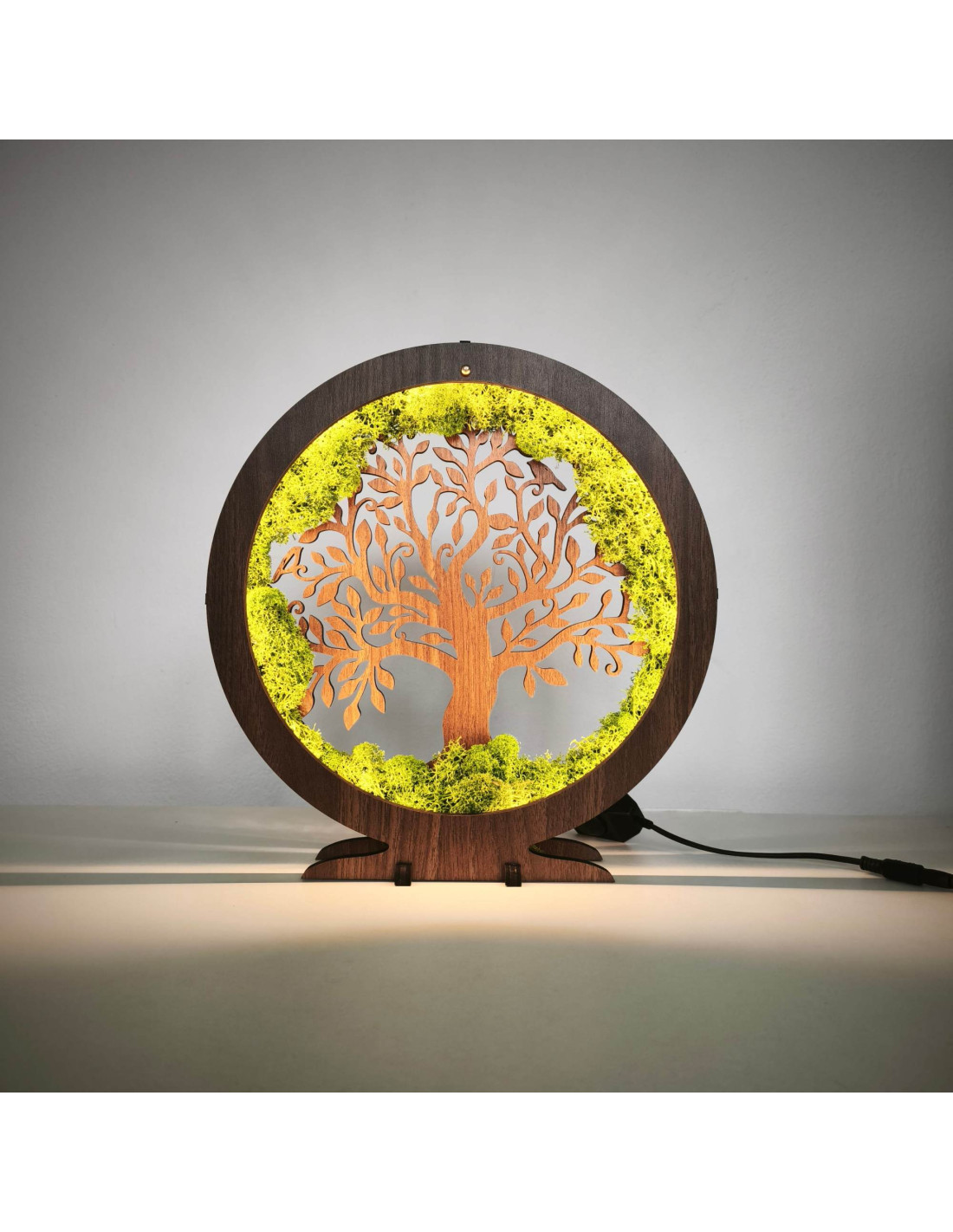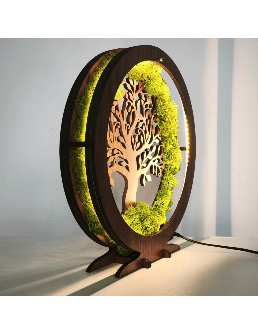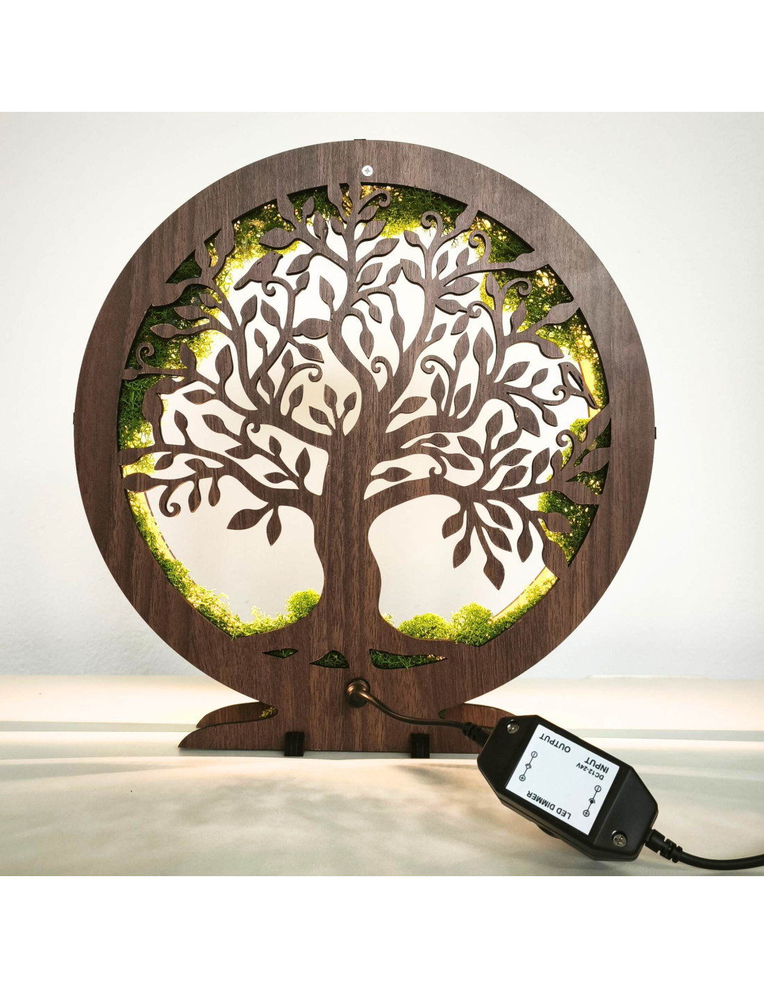This dimmable LED decorative table lamp with a circular tree of life motif is an elegant combination of nature and modern design.