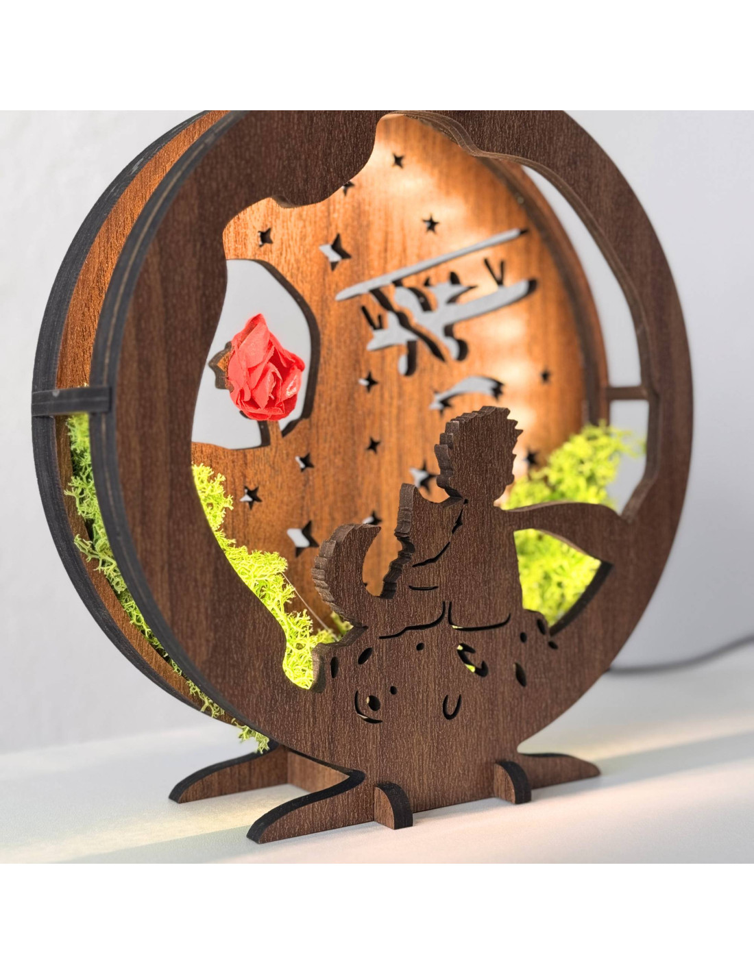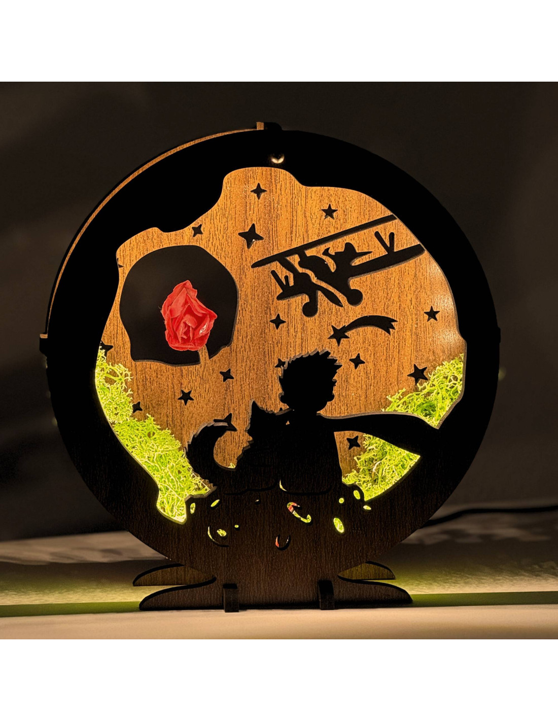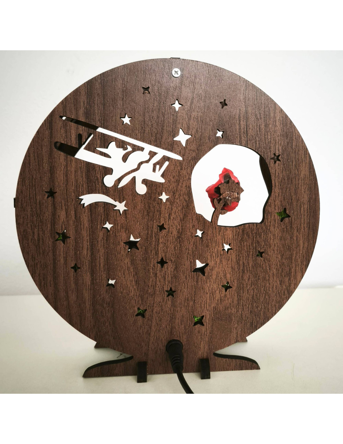 LED decoration Little Prince with airplane | Wenge walnut