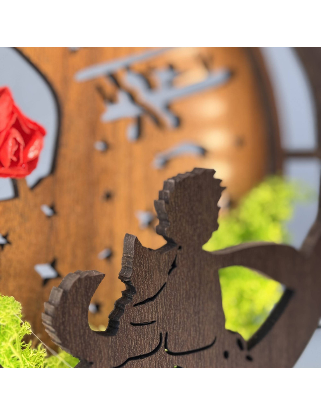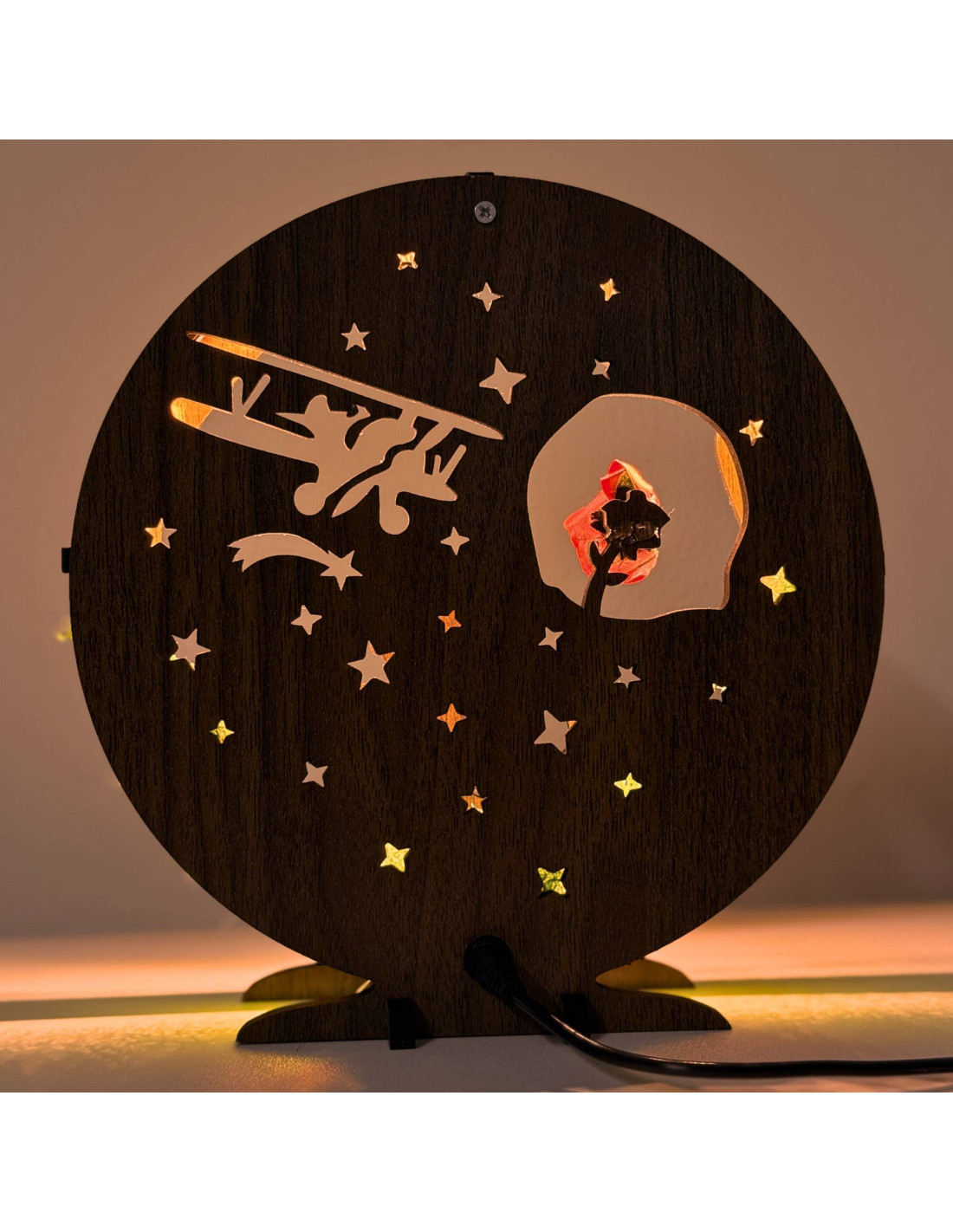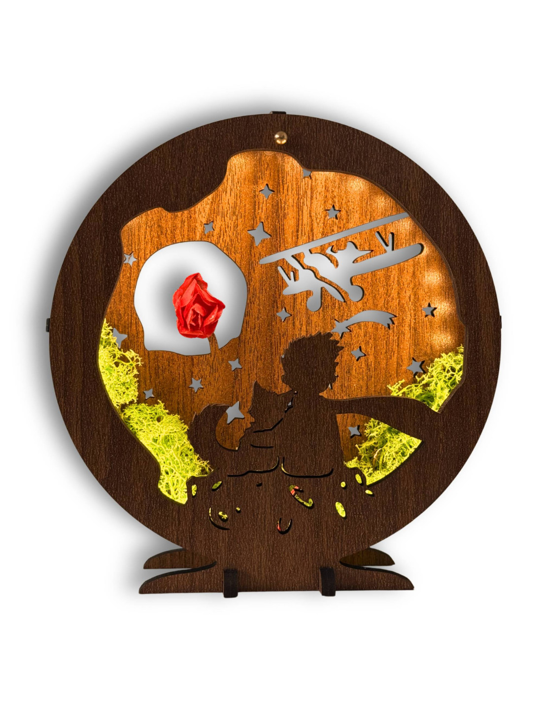 LED decoration Little Prince with airplane | Wenge walnut