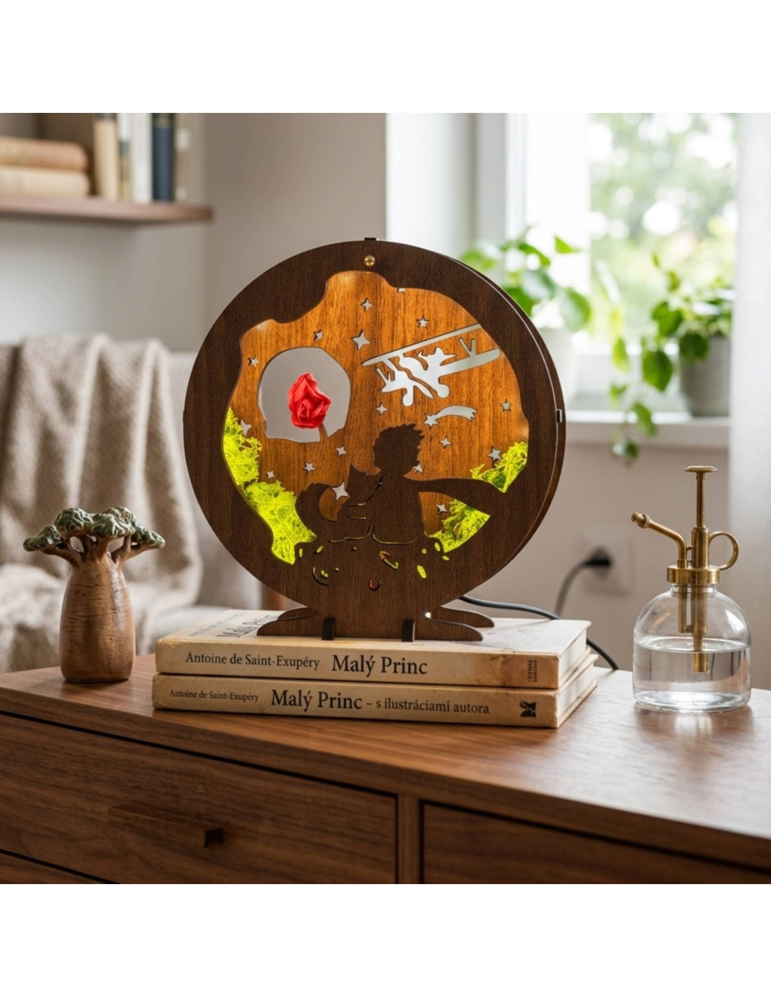 This dimmable LED decorative table lamp with the Little Prince motif is a unique combination of a fairy tale, natural elements and modern lighting.
