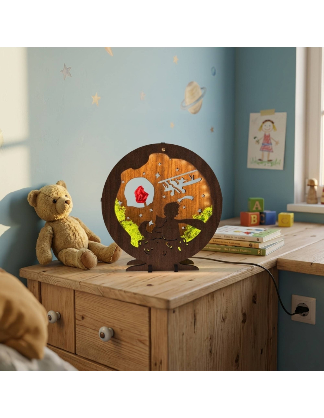 The detailed design with the Little Prince figure, a rose and the night sky creates a pleasant warm ambient light , ideal for the living room, bedroom or children's room.