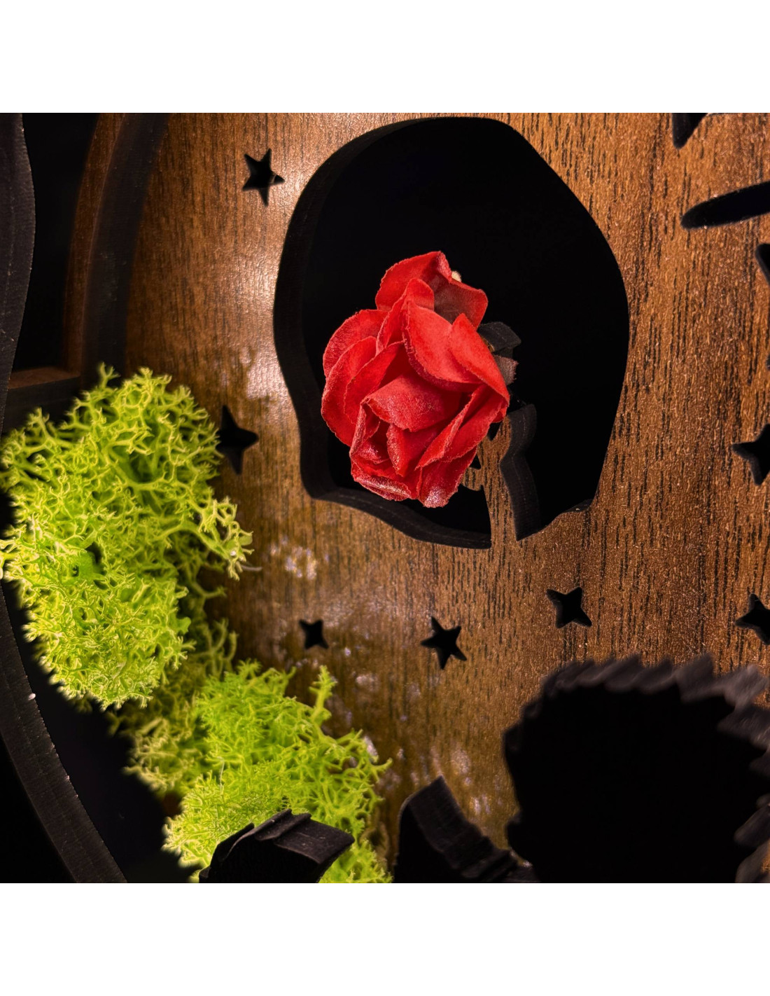 The natural structure of the HDF board, subtle color differences and slight differences in the arrangement of the moss are a natural part of the product and underline its unique character.
