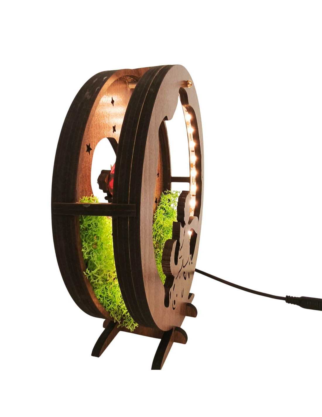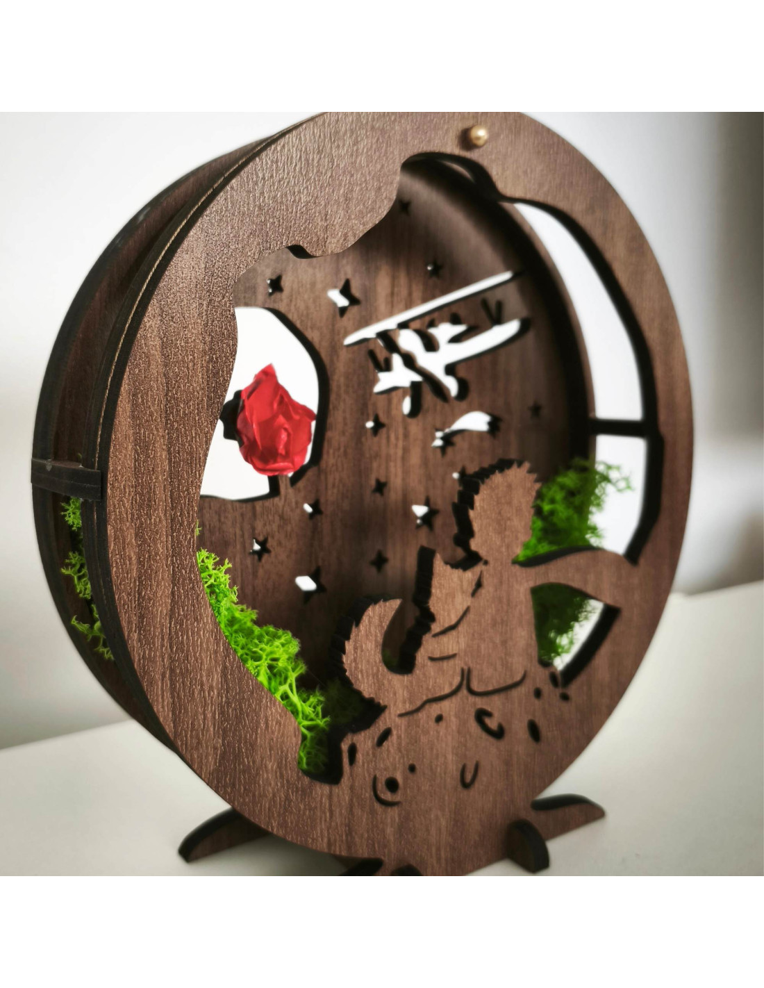 LED decoration Little Prince with airplane | Wenge walnut