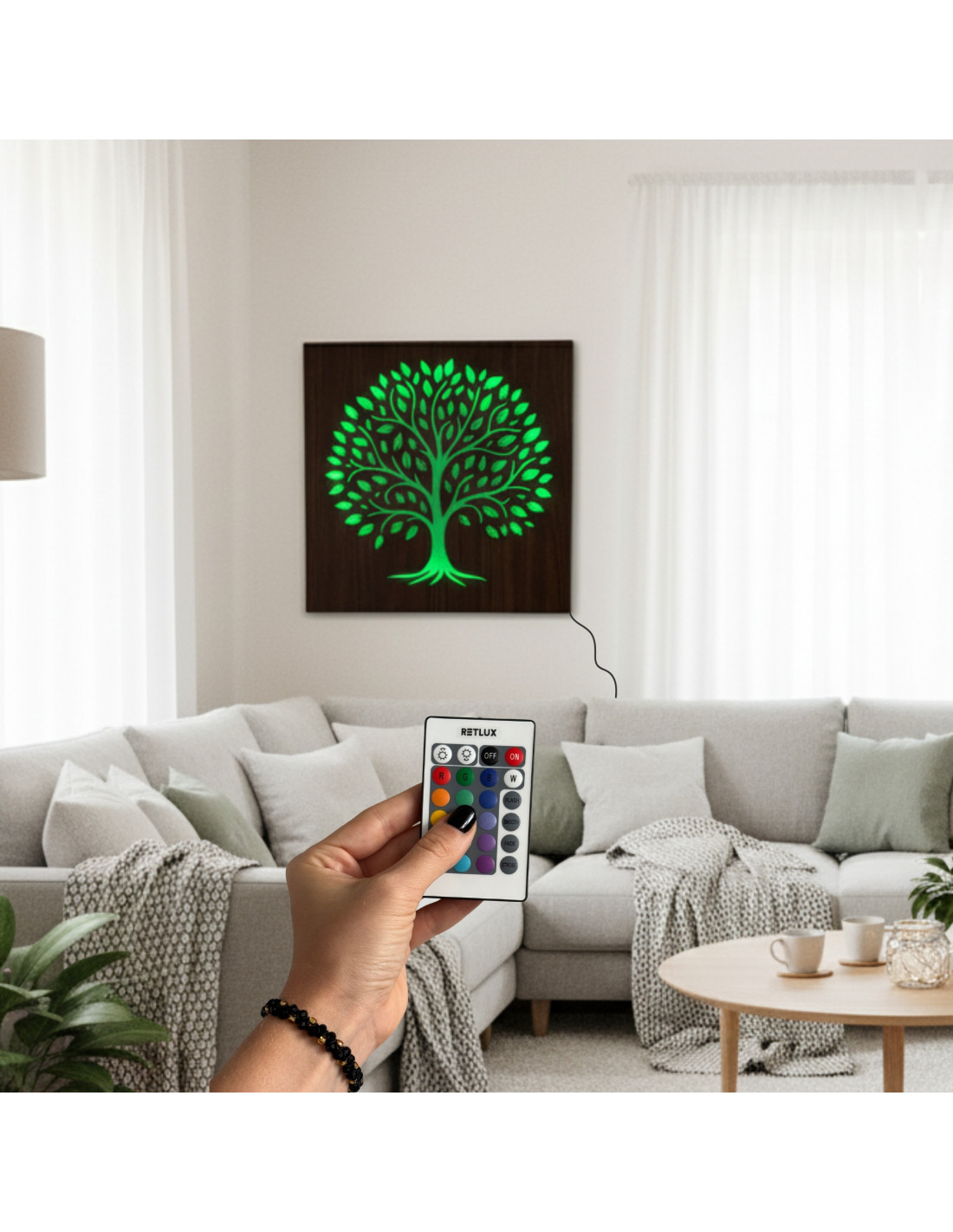 LED light painting tree of life - wooden decoration with RGB LED backlight , adjustable colors and brightness, interior decorative light for the living room, bedroom and office.