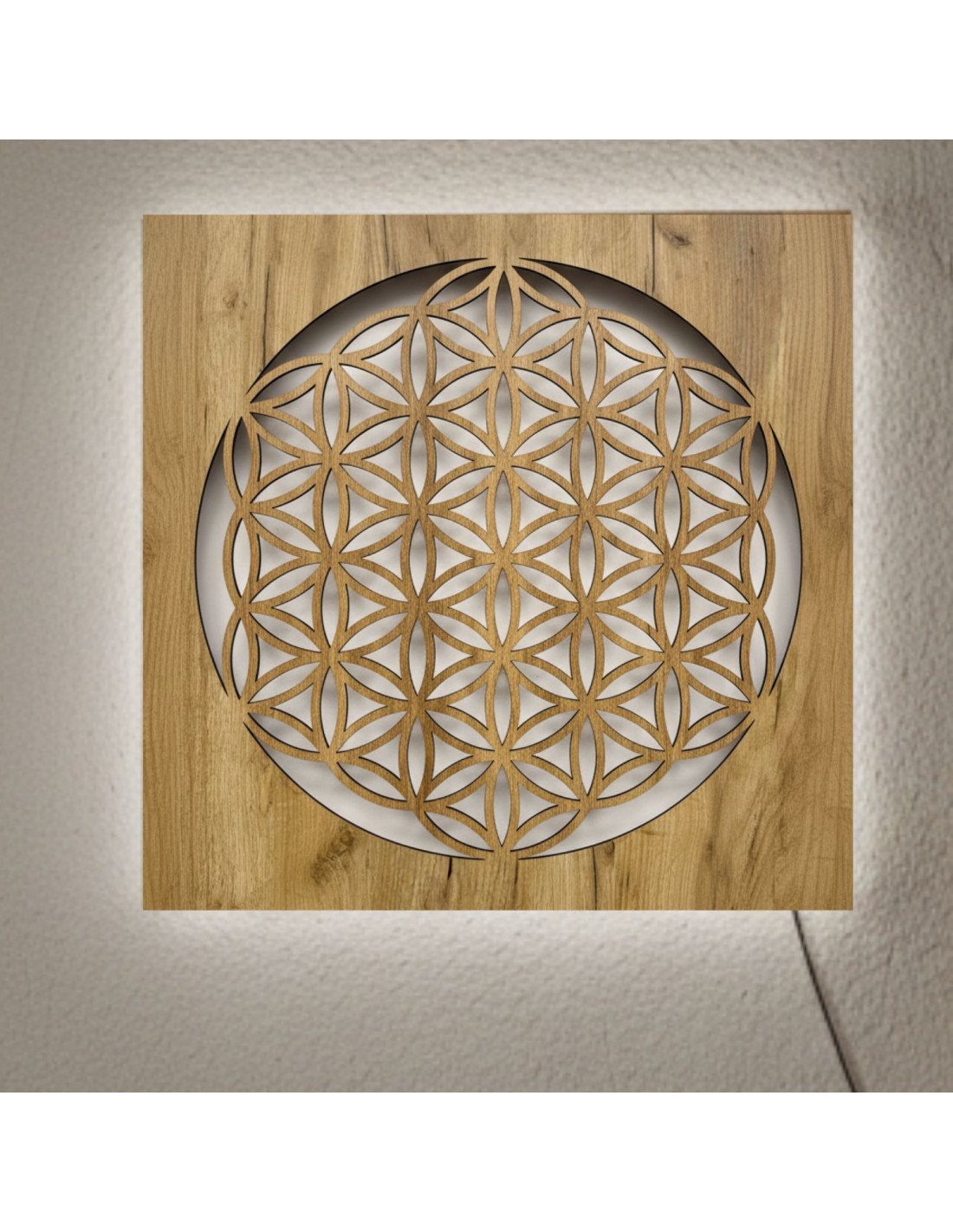 Backlit wooden painting Flower of Life – LED mandala wall decoration | MONEN