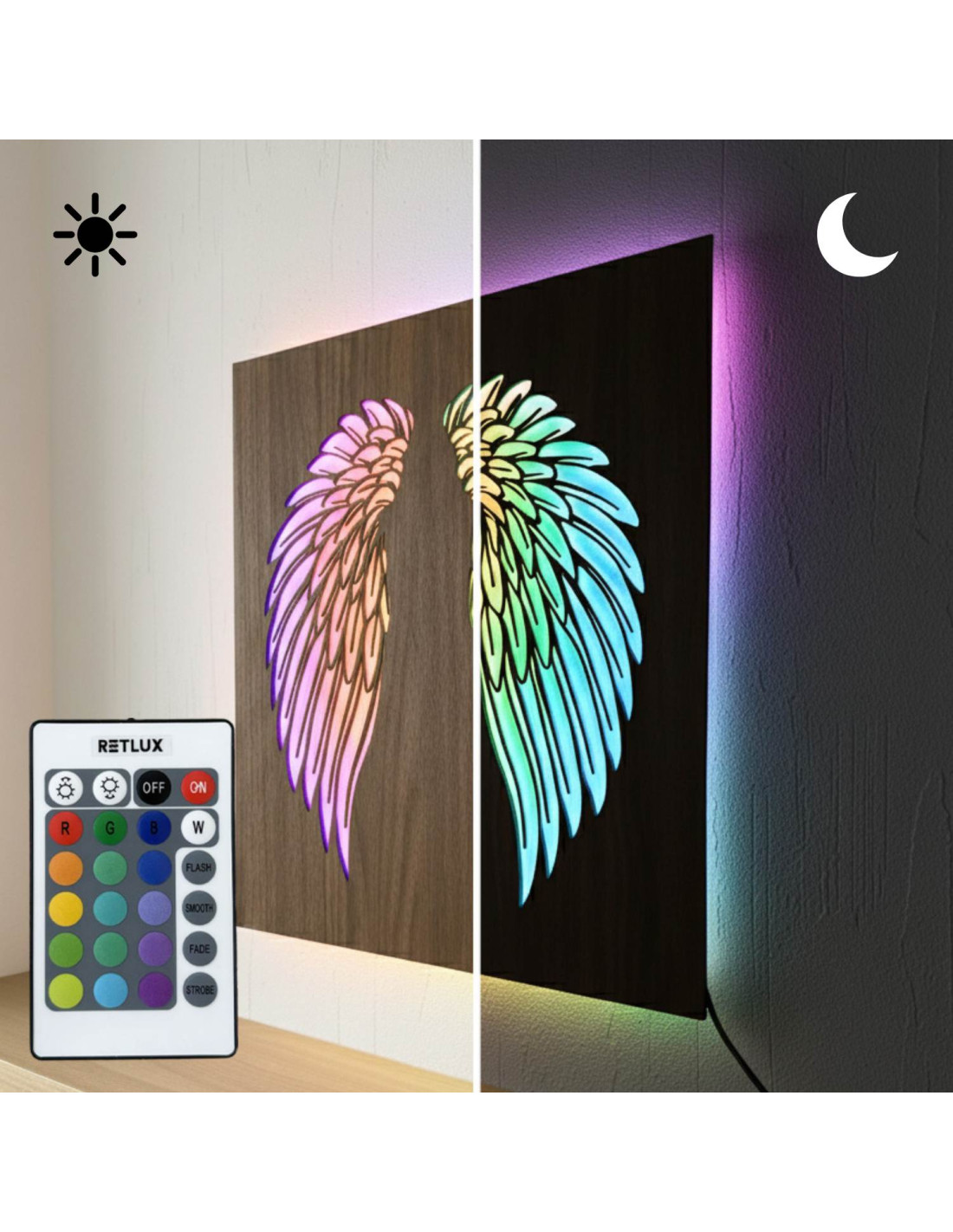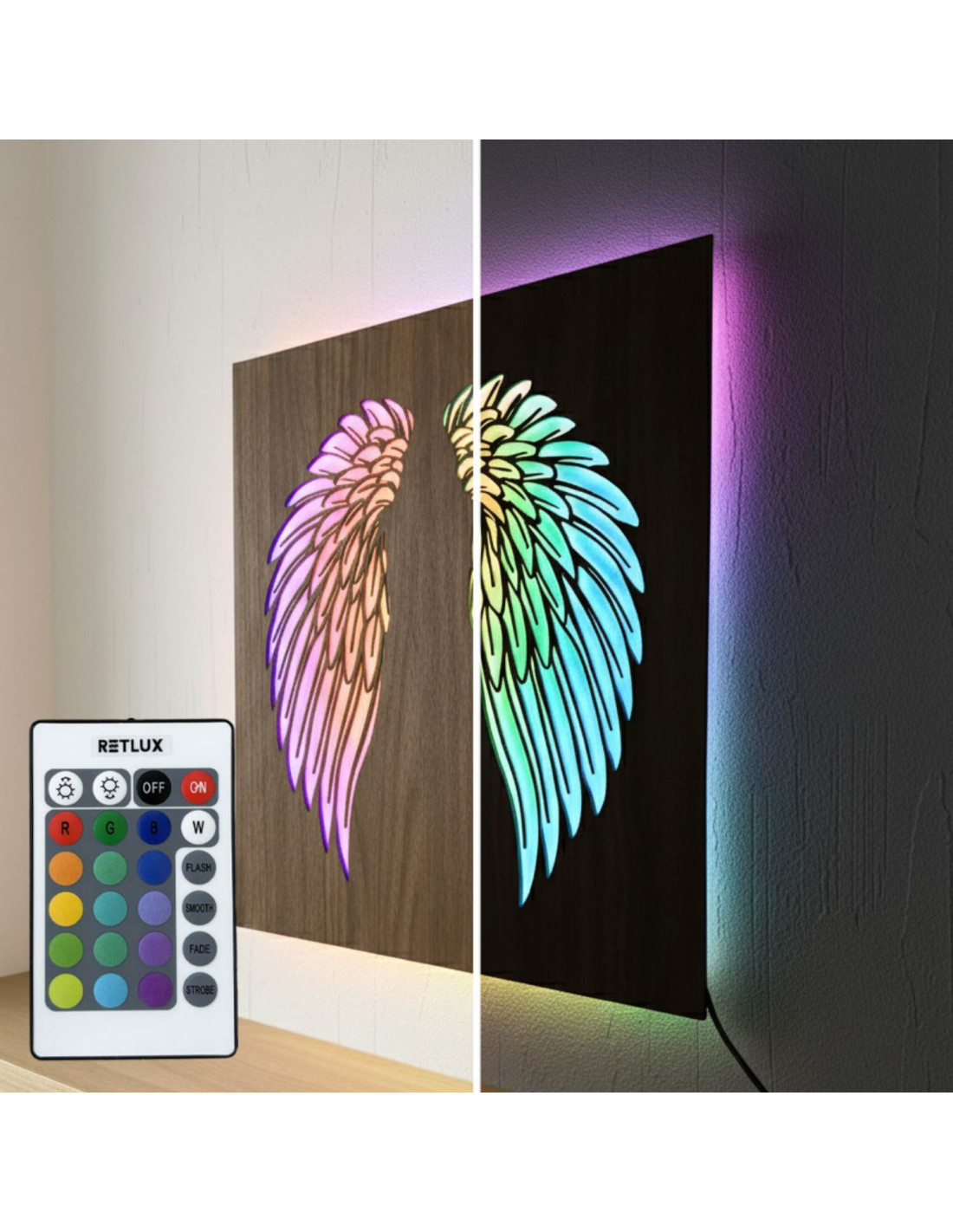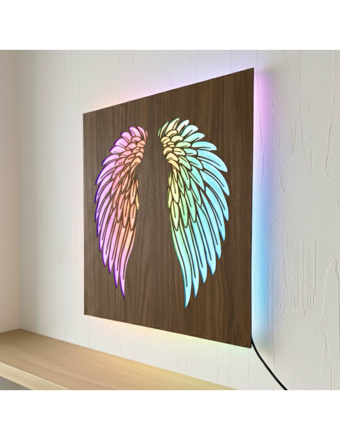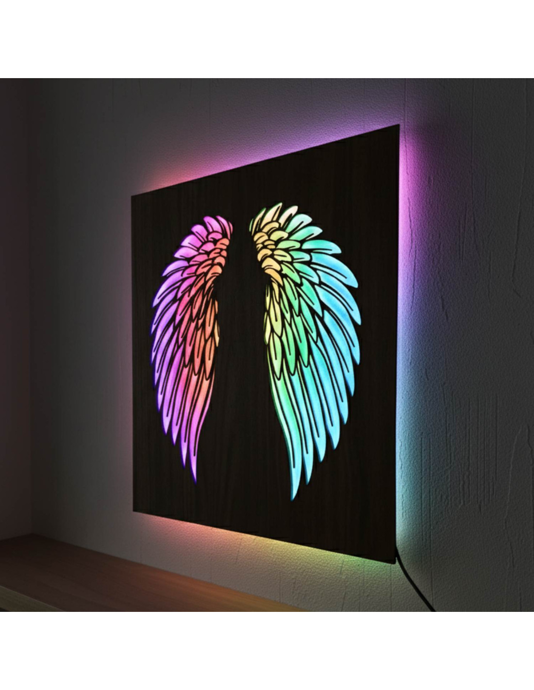 LED wooden picture - angel wings with modern RGB lighting