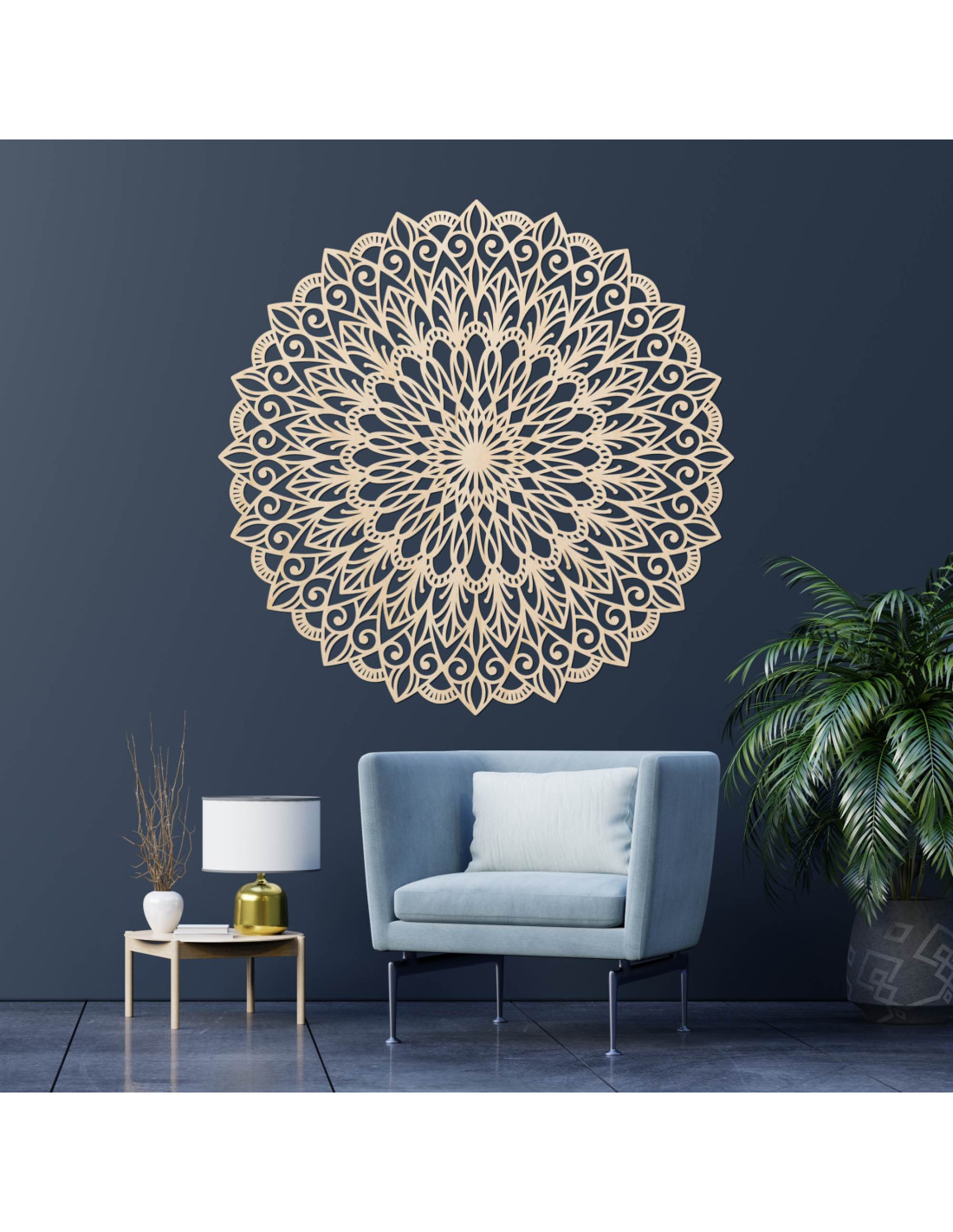 This wooden mandala is carved using laser technology to achieve fine details and then hand-finished for a unique look.