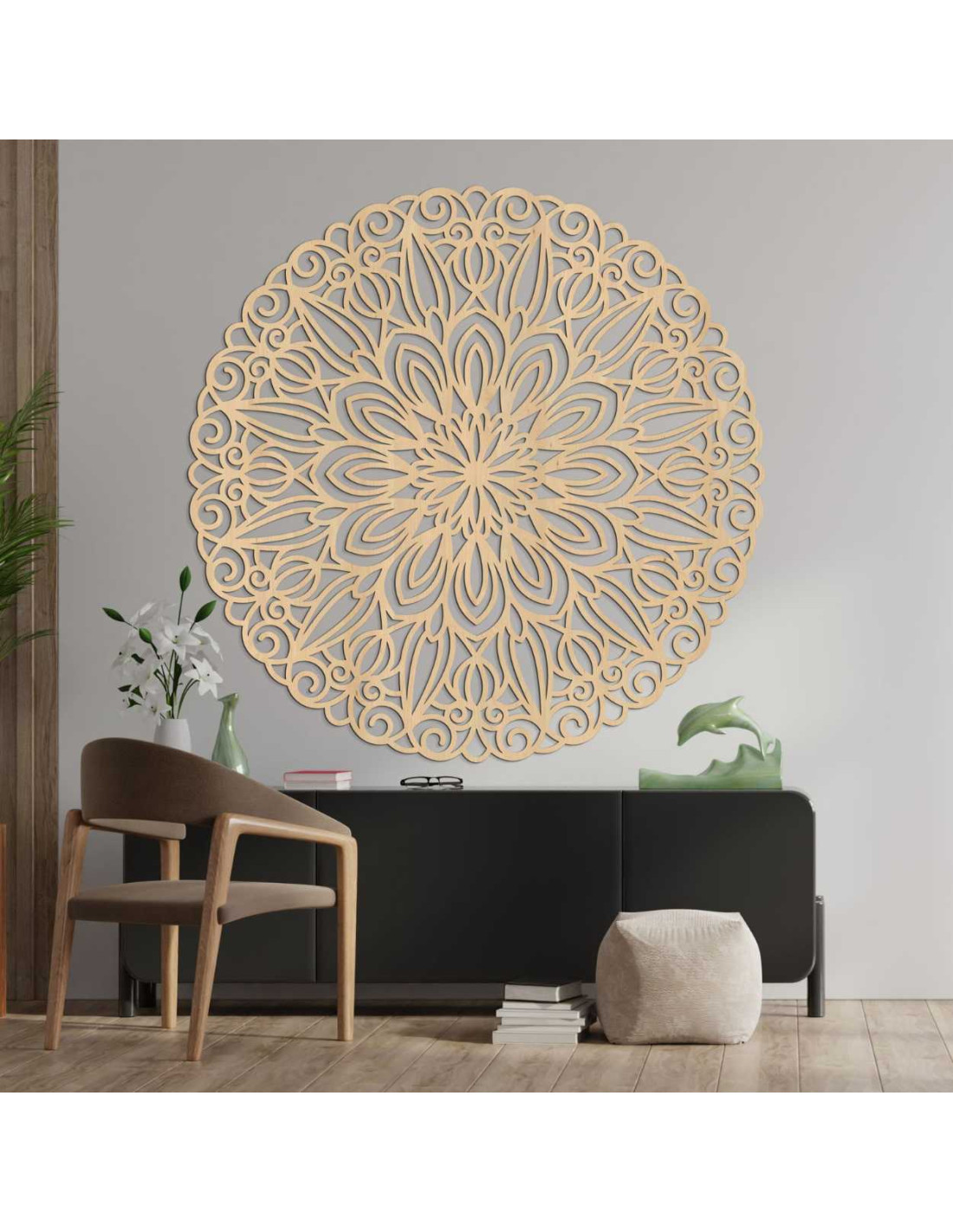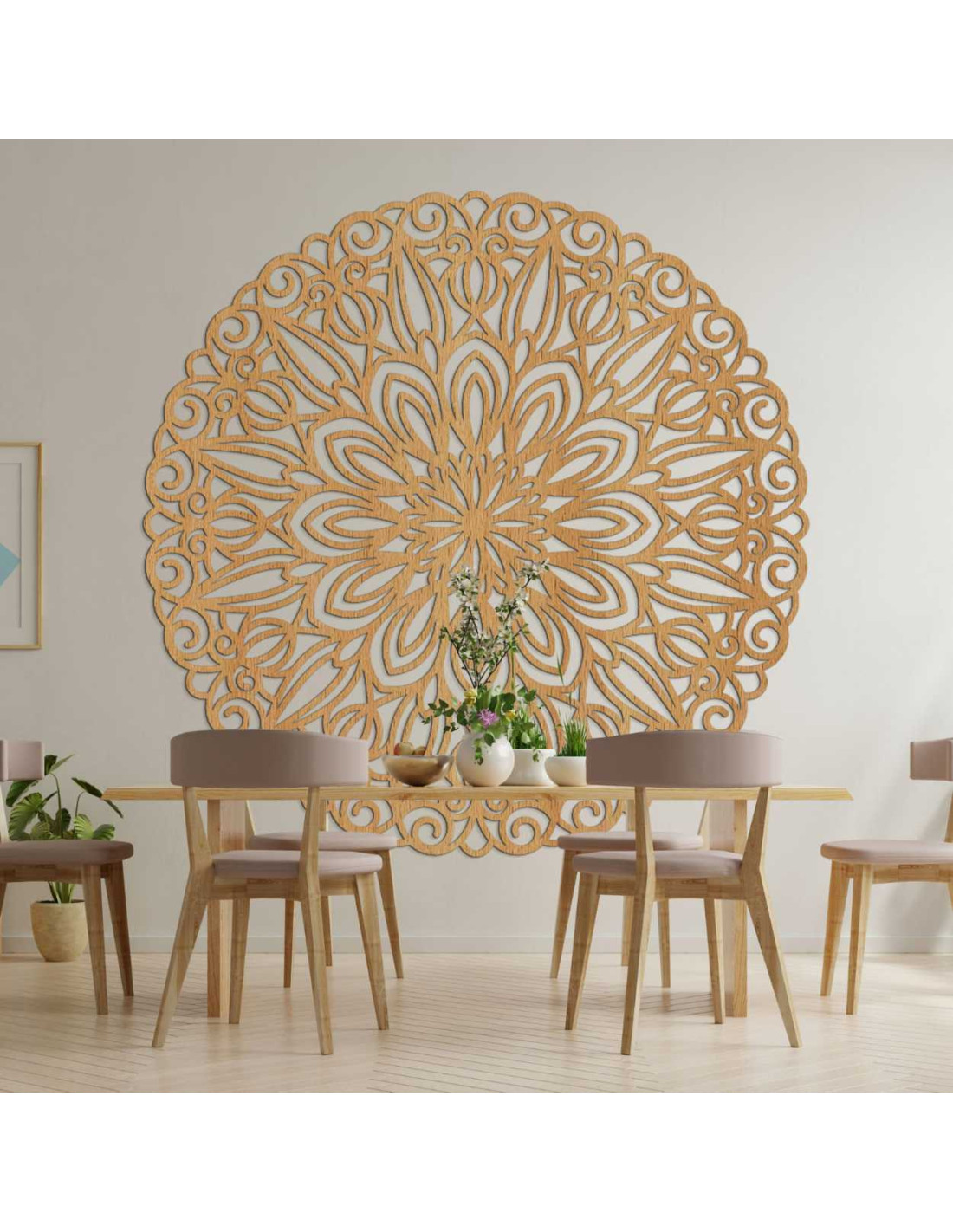 The decoration combines the beauty of geometry and the elegance of traditional ornaments. With its sophisticated design, it brings a sense of elegance and originality to the space. The balanced distribution of elements naturally leads the eye to the center, creating a pleasant visual experience.