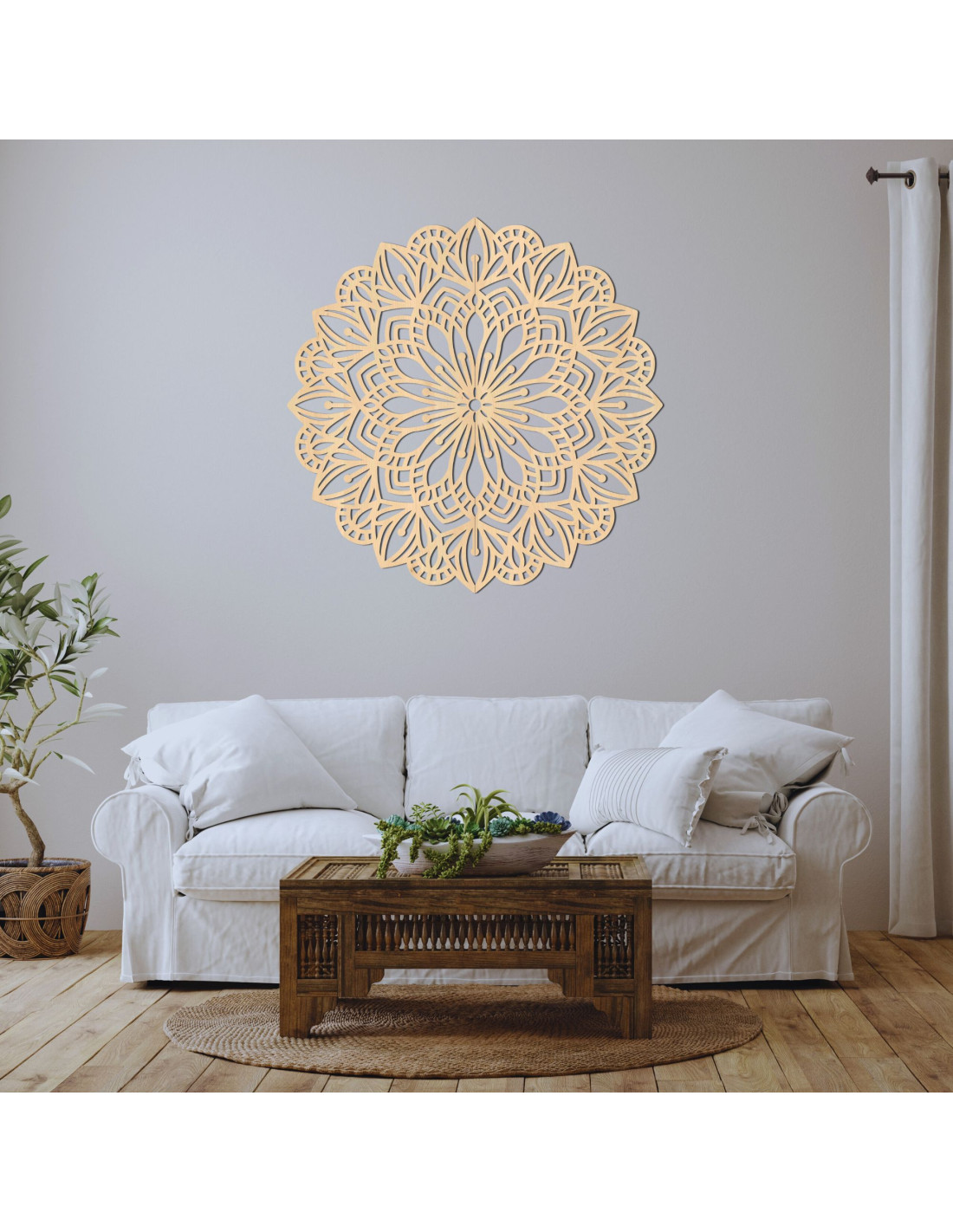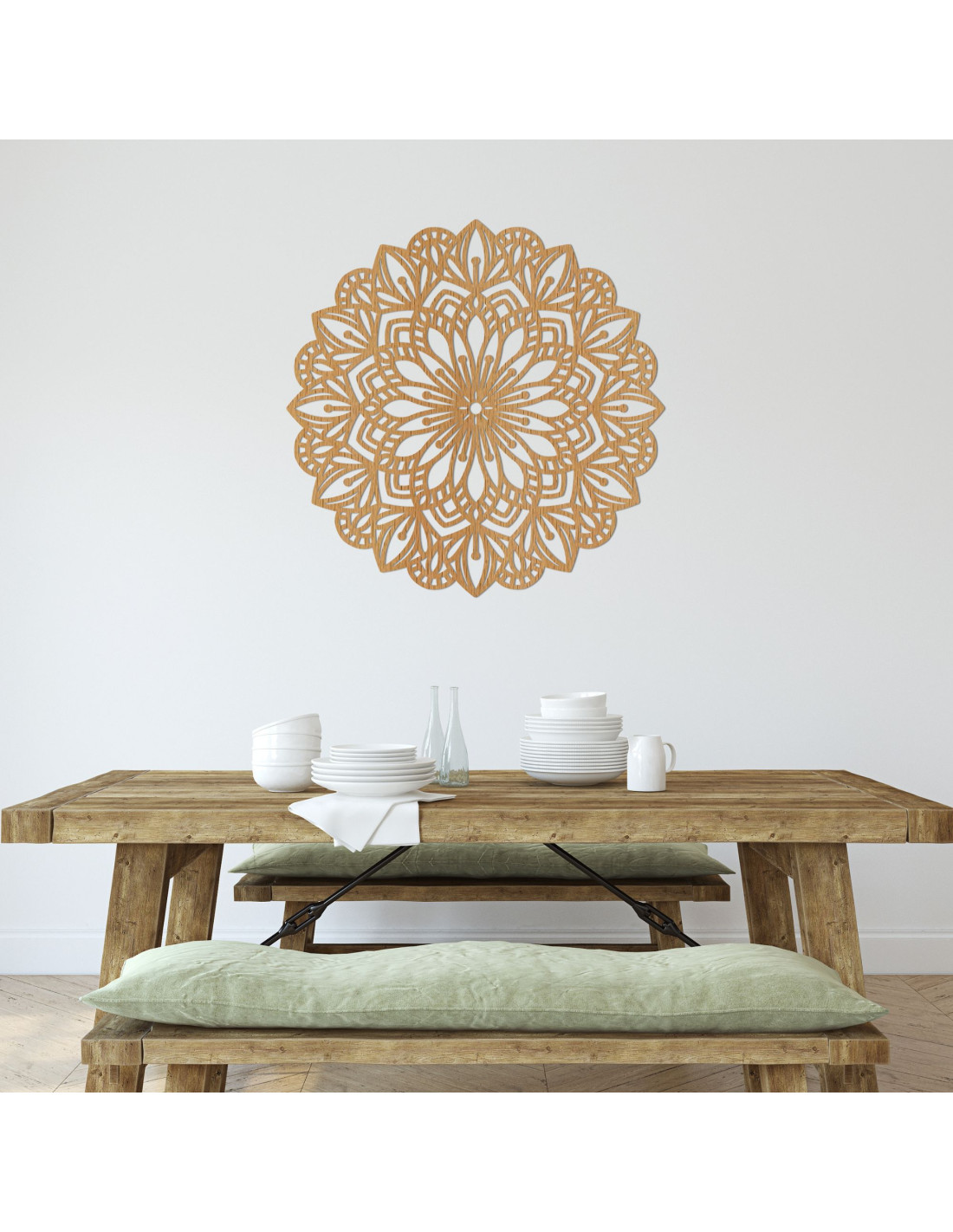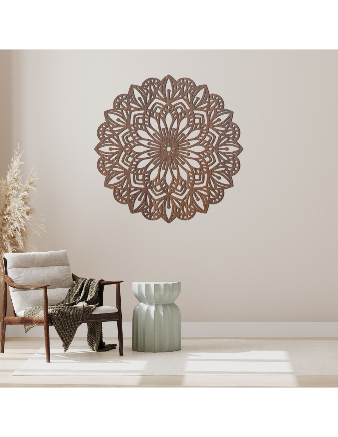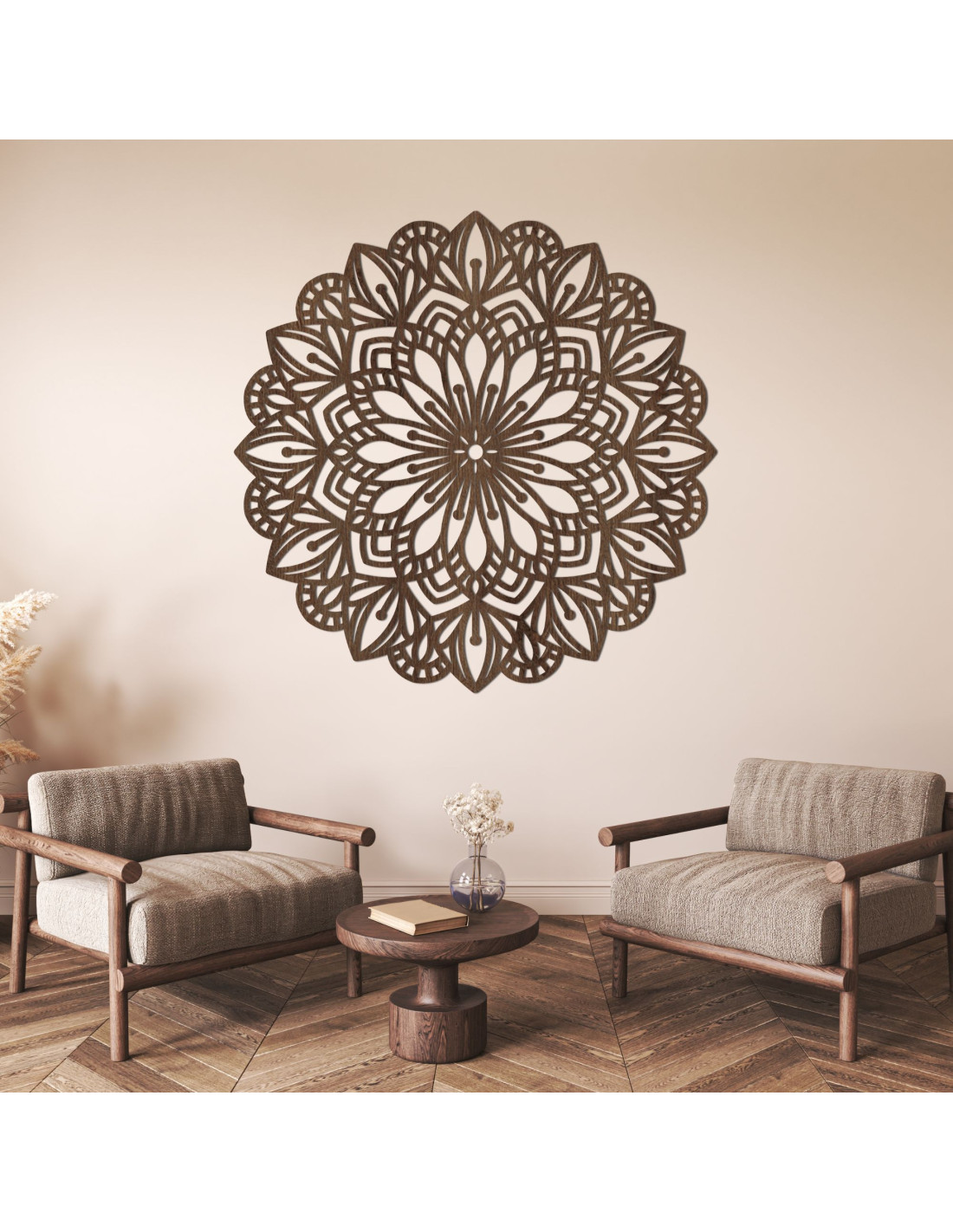The intricately carved pattern brings natural lines and subtle symbolism , making the mandala an enchanting element of peace, balance and beauty in the interior. It is a decoration that will make any space cozy and give it an original, energetic and modern character.