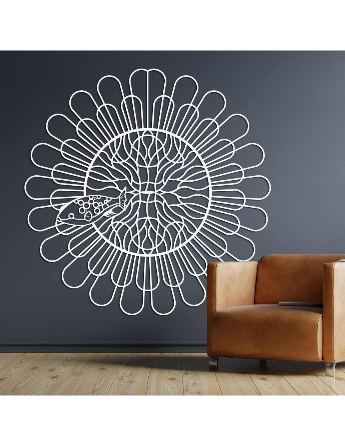 Wall decoration with a distinctive circular pattern resembling a blooming flower.