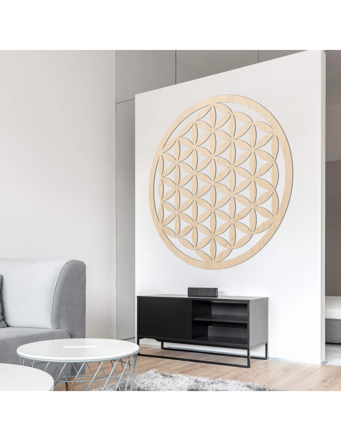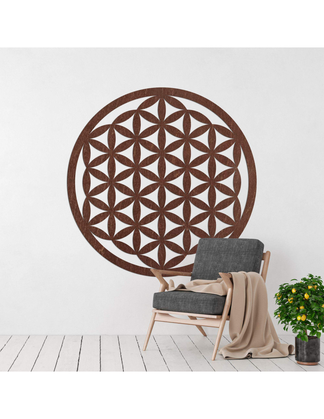 A wooden decoration with a flower of life motif will enliven your space with a symbol of unity, harmony, and endless energy.