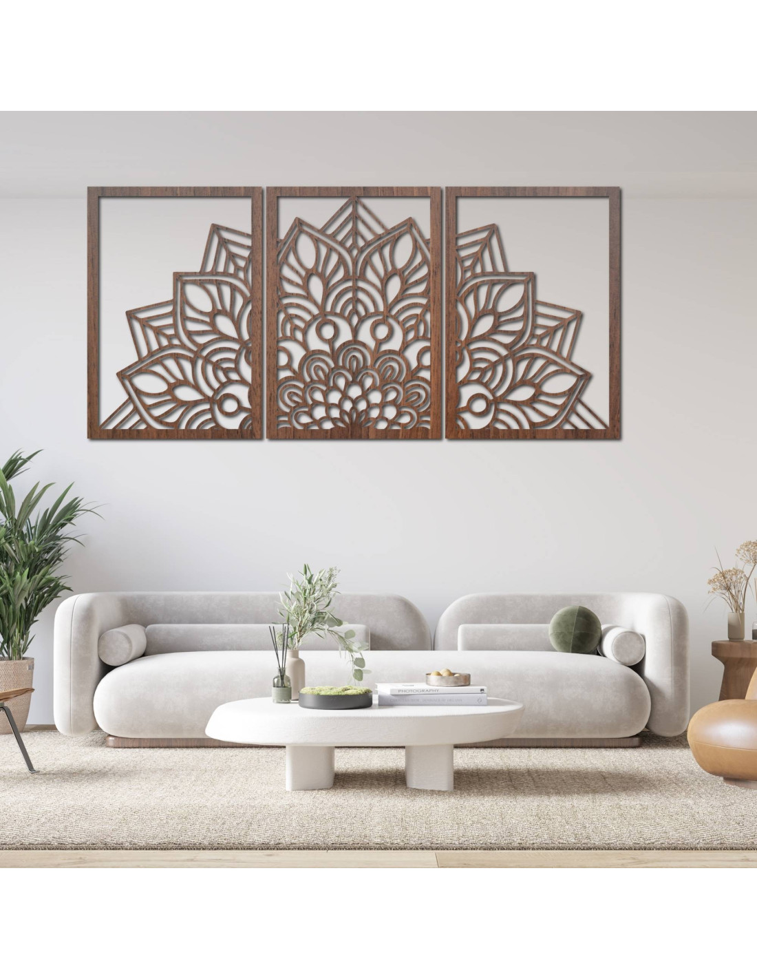 Elegant 3-piece flower mandala for your living room - modern design