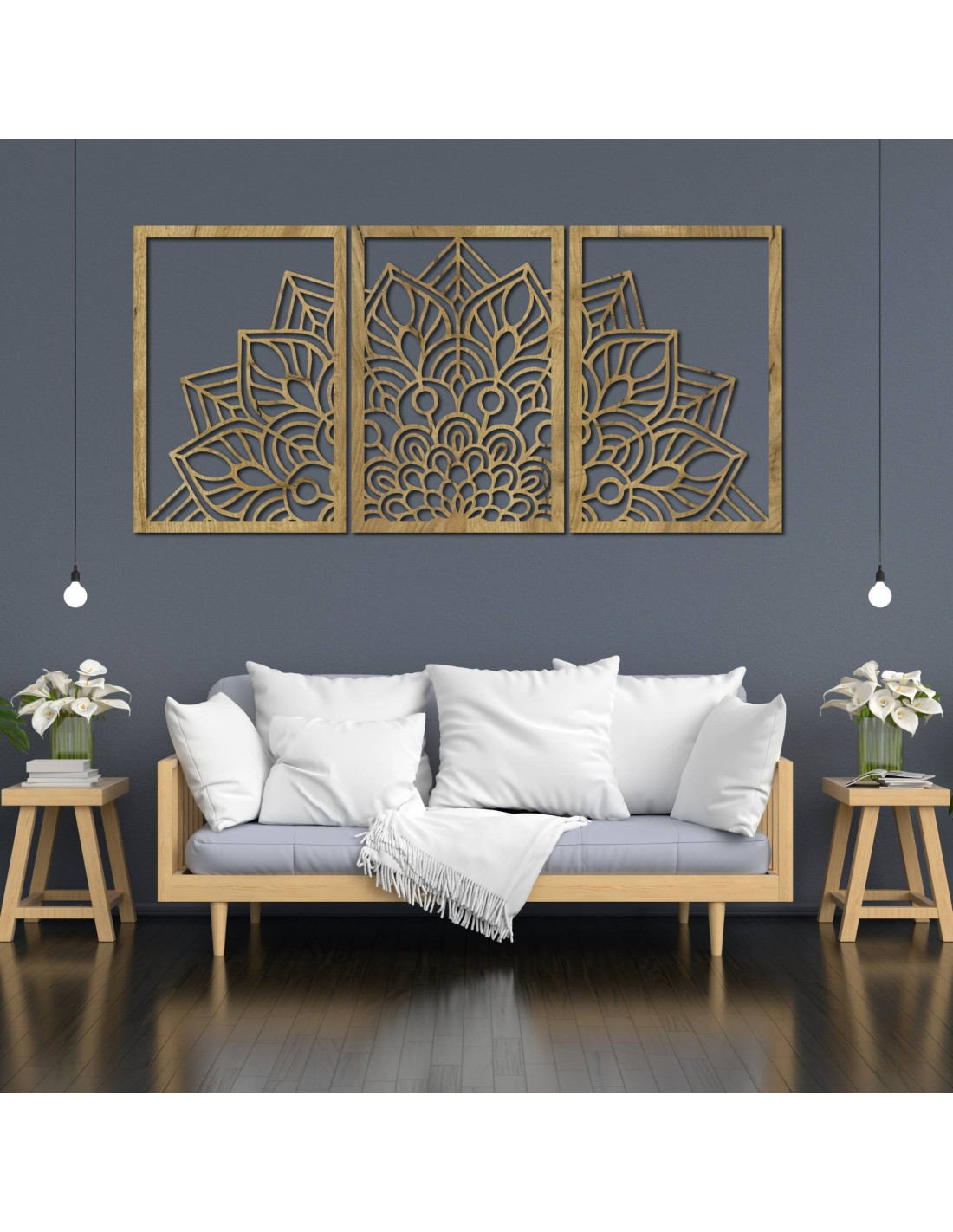 Elegant 3-piece flower mandala for your living room - modern design
