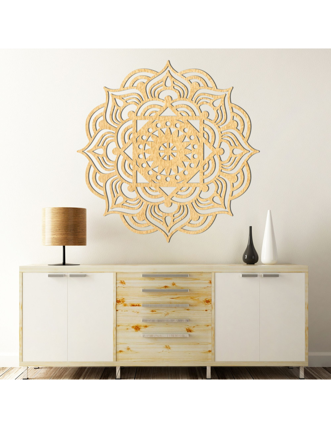 This ROMANCE wooden mandala is a unique wall decoration that combines sophisticated elegance with a balanced and harmonious design.