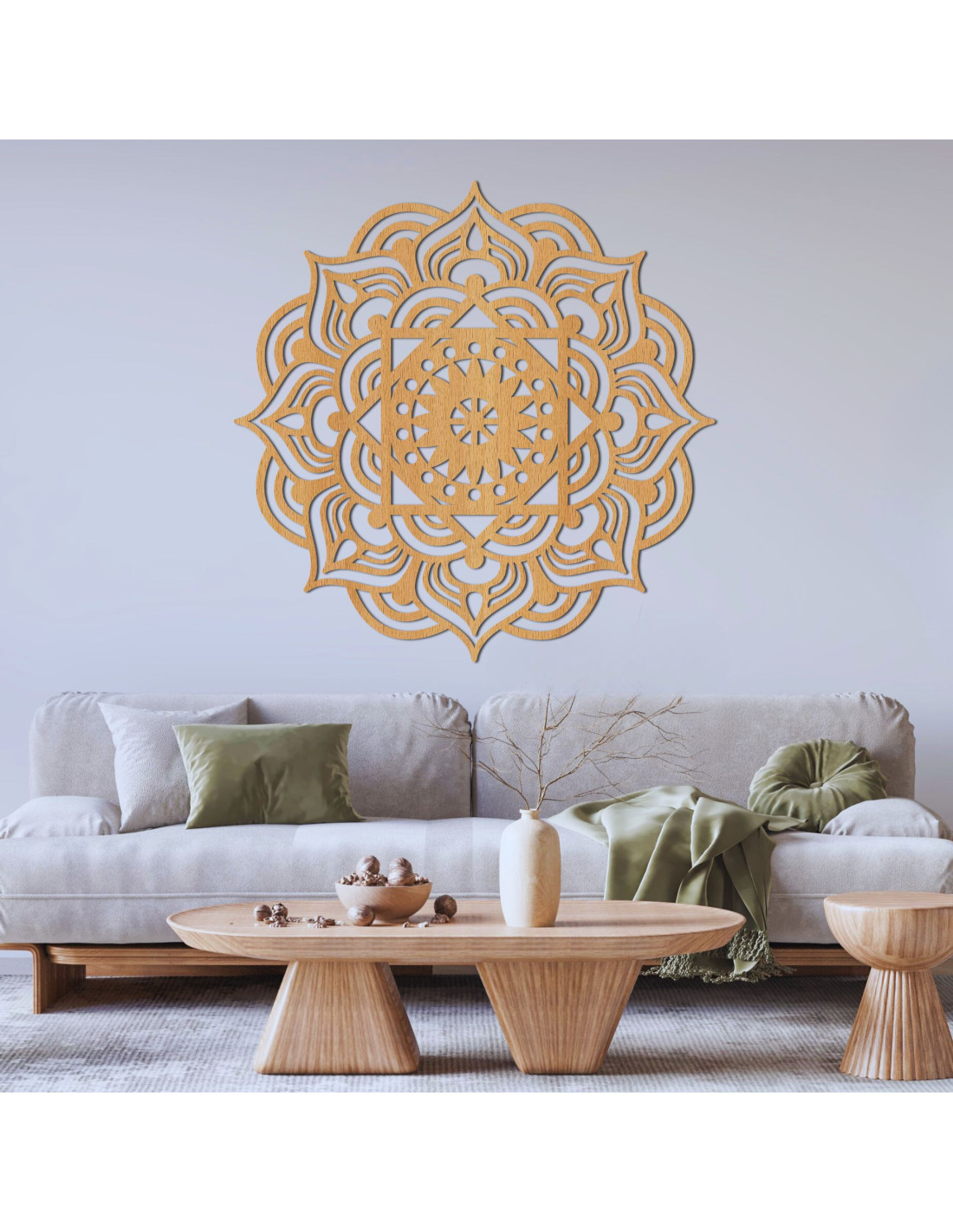 Wooden mandala wall decoration Their design, expressing balance and positive energy, combines the natural beauty of wood with precise craftsmanship.