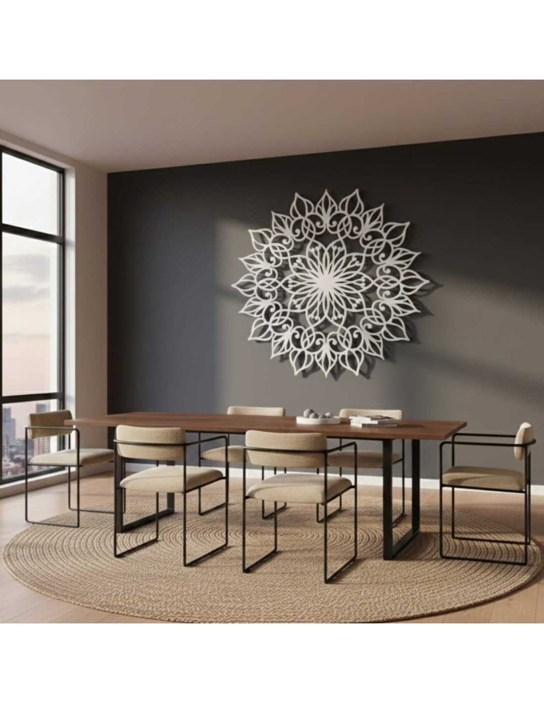 The mandala has a harmonious effect and creates a calm, balanced atmosphere , ideal for both modern and minimalist spaces.