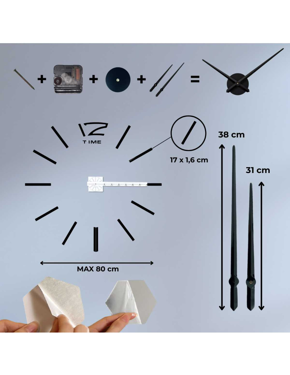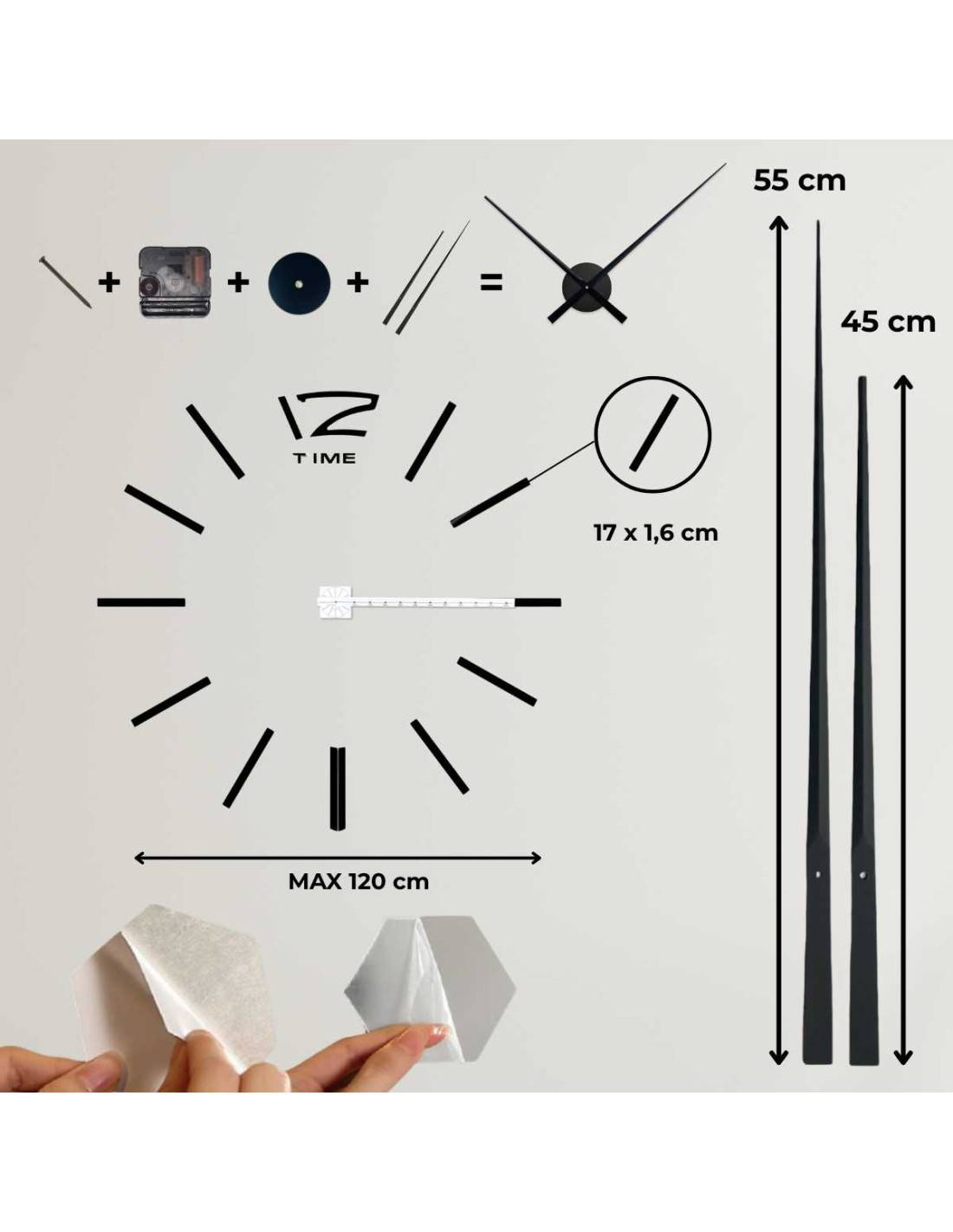 Discover a stylish wall clock with an adjustable diameter of up to 130 cm, which will stand out as a striking element in the living room, bedroom, office or entrance hall.