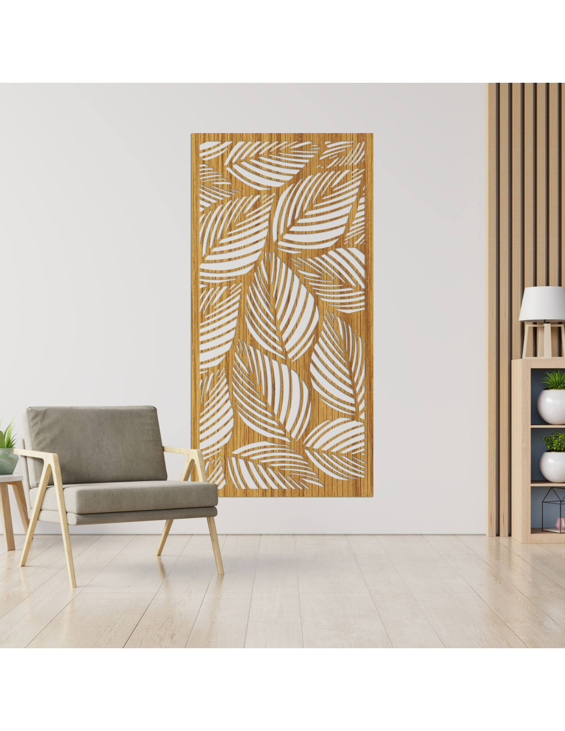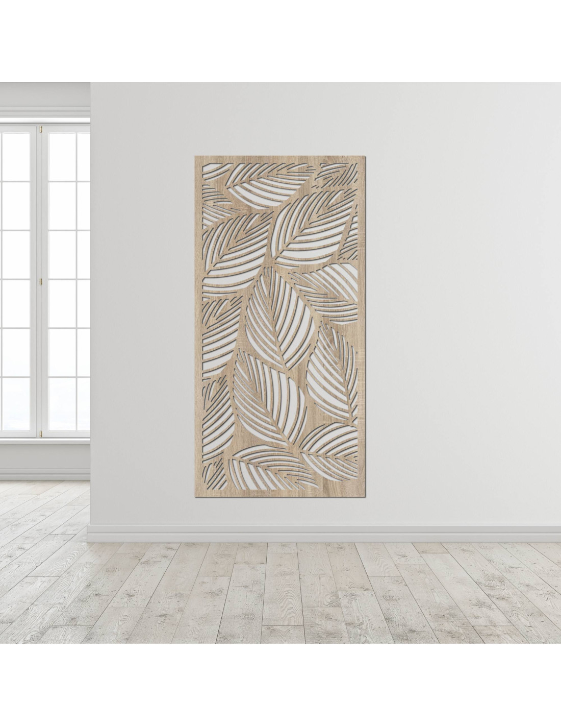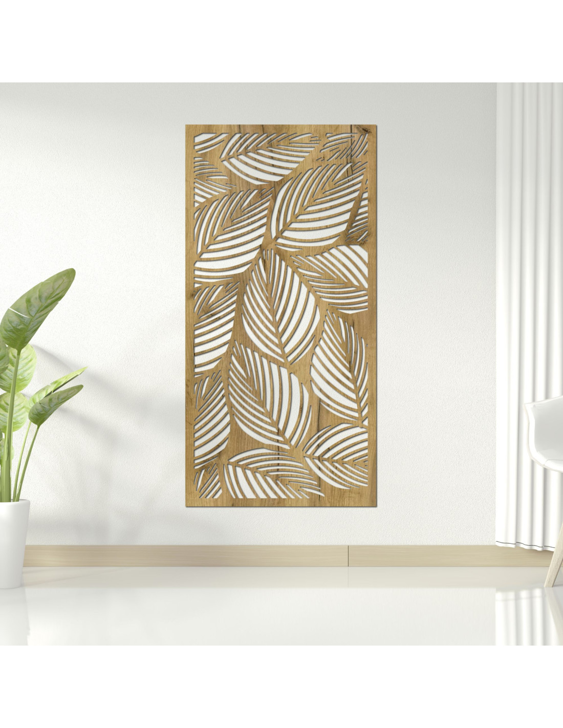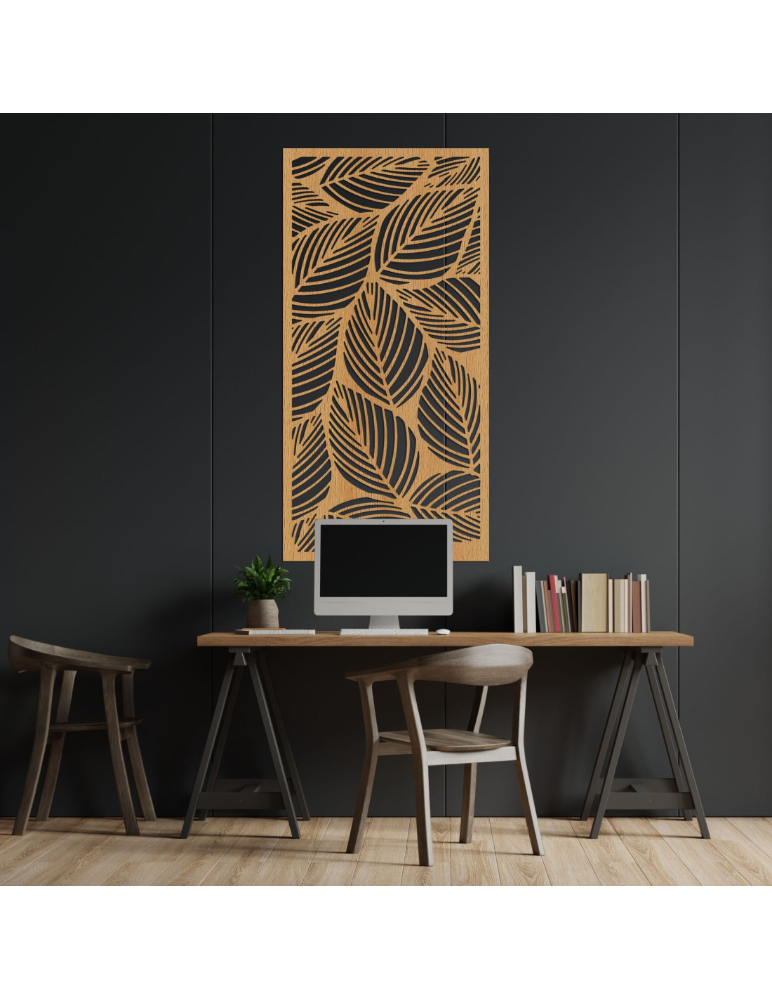 Wooden wall decoration Leaf: Tropical wooden panel painting.