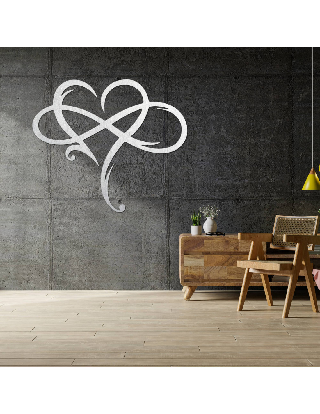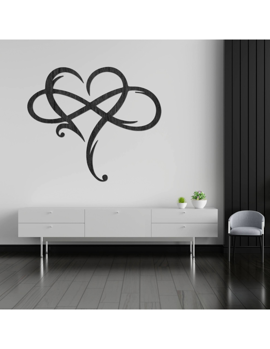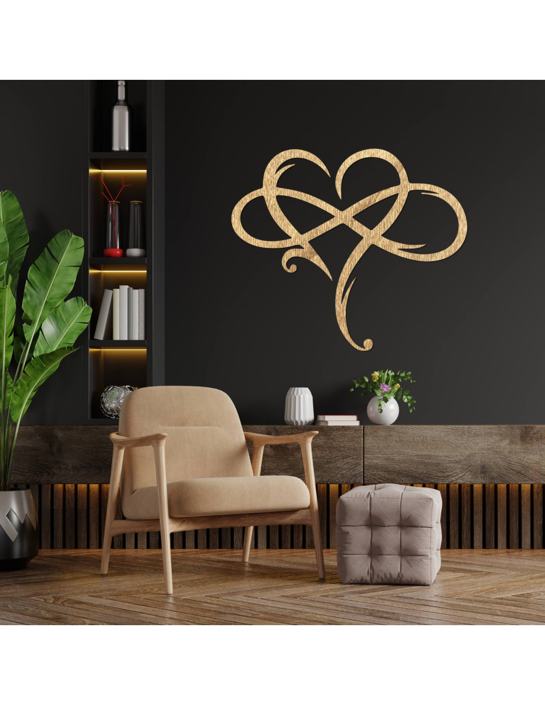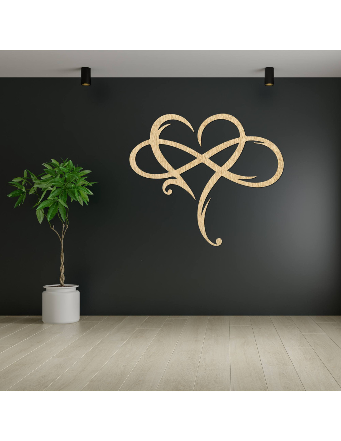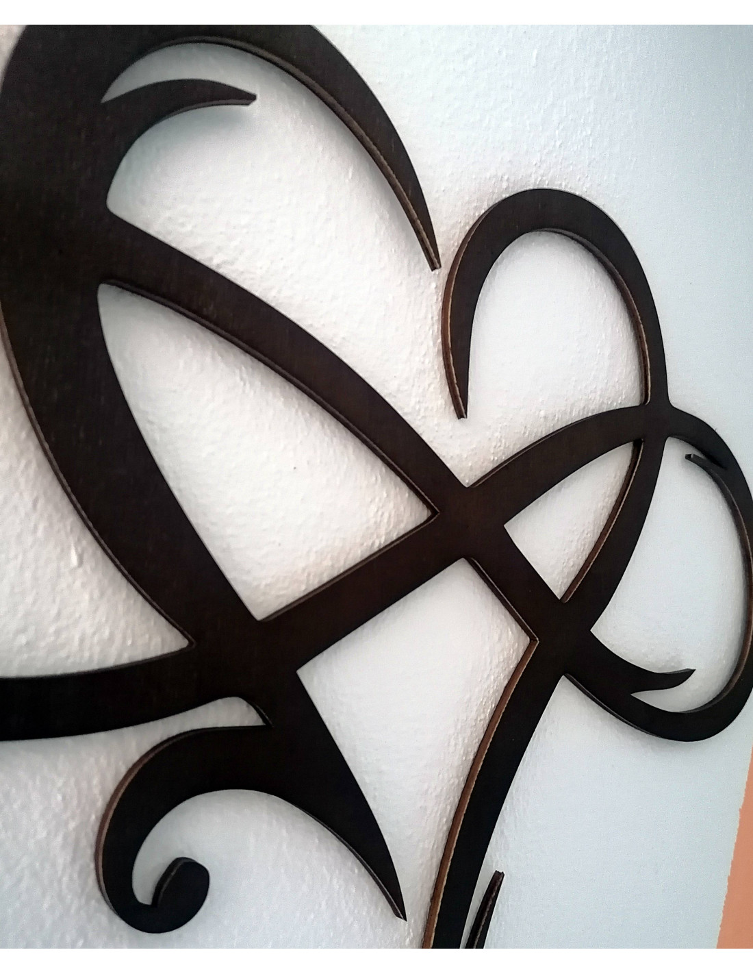 The picture in the shape of an infinite heart, precisely made of high-quality wooden material , represents a symbol of eternal love and a strong connection.