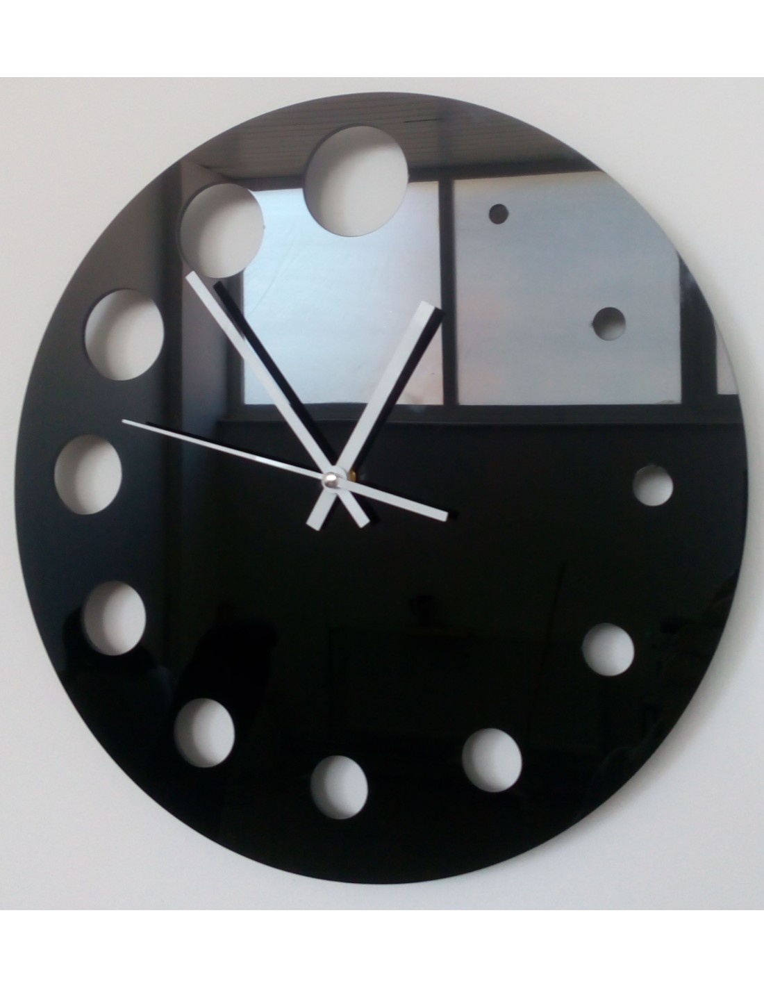 Modern decorative wall clock. The clock is made of PMMA acrylic glass.