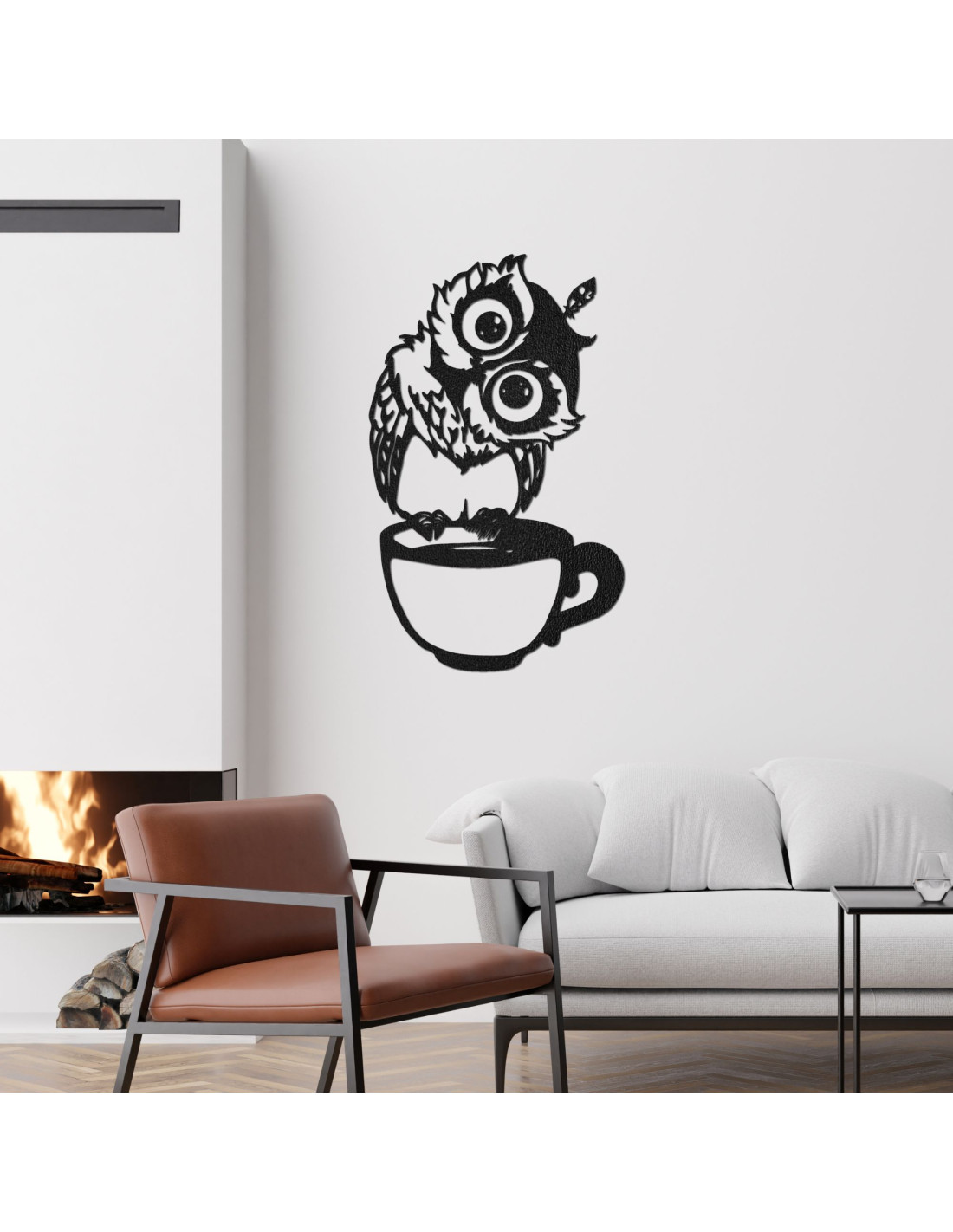 The cup on which the owl sits symbolizes peaceful moments and relaxation.
