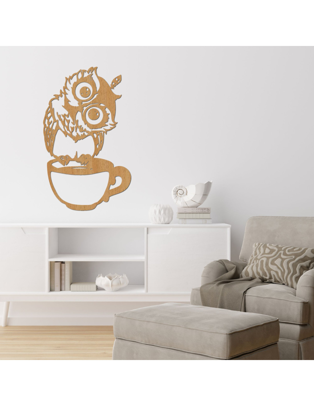 A wooden owl sitting on a cup will instantly brighten up any space and bring a smile to your face. With its big eyes and playful design, it will perfectly complement your home with a piece of nature and comfort. It is perfect for a wall, shelf or as a gift for lovers of original pieces. Whether you are looking for something to cozy up your space or just want to bring a little forest atmosphere into your home.