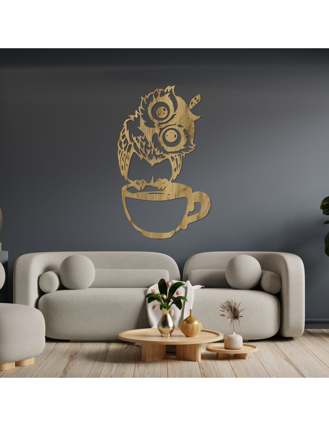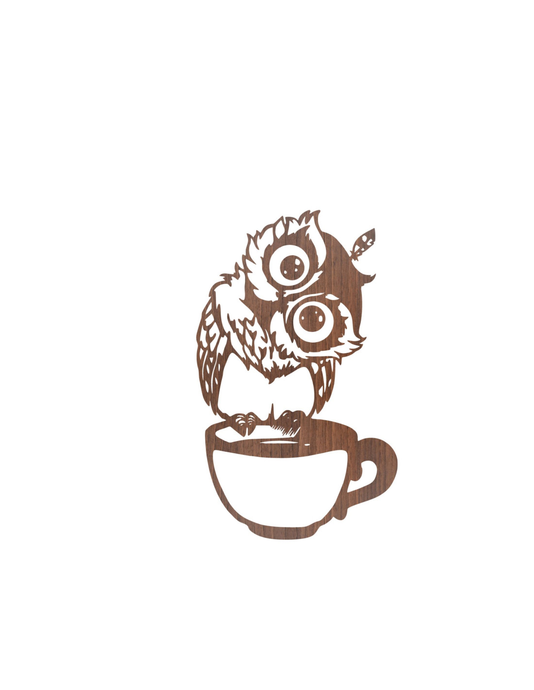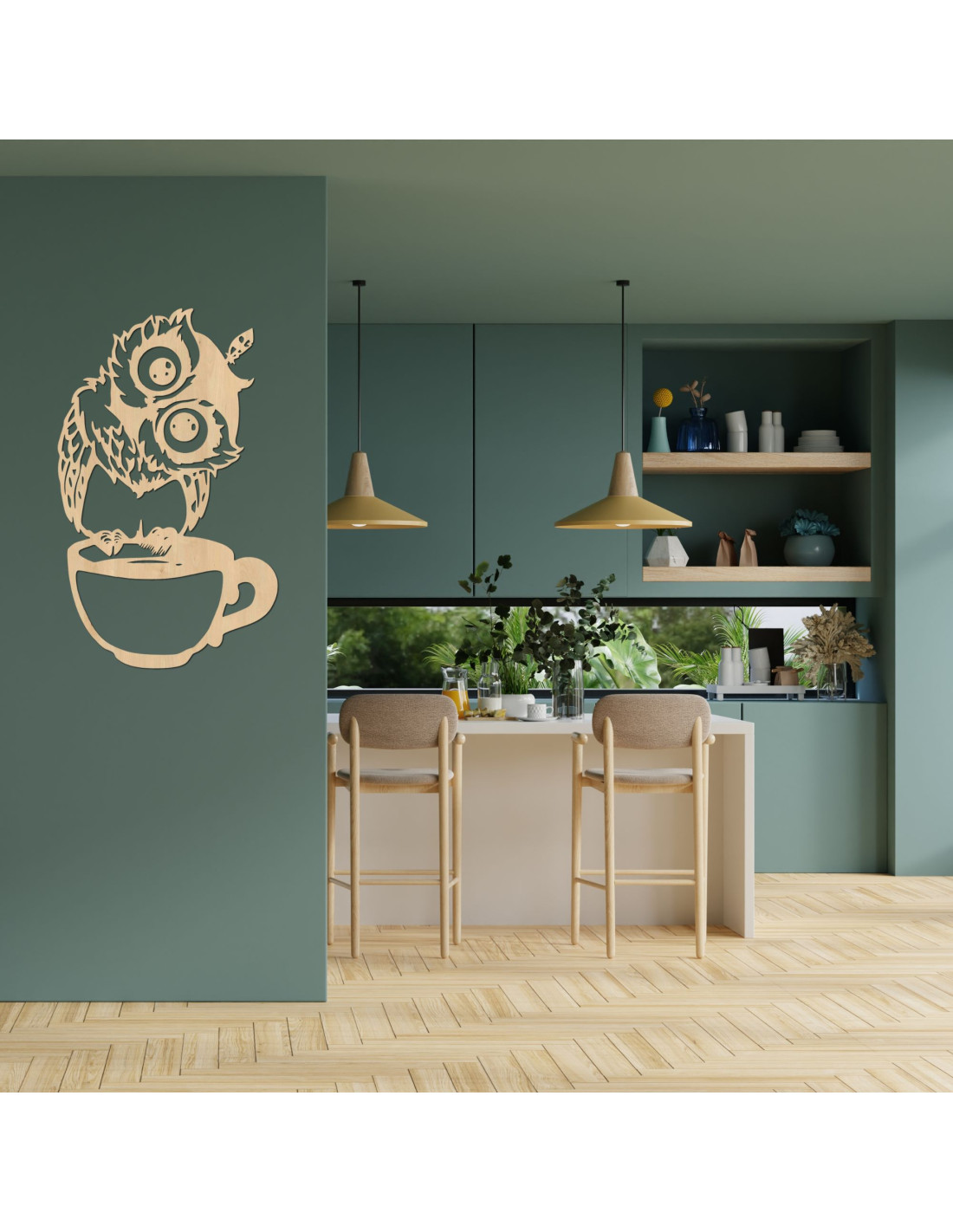 A wooden owl sitting on a cup will instantly brighten up any space and bring a smile to your face. With its big eyes and playful design, it will perfectly complement your home with a piece of nature and comfort. It is perfect for a wall, shelf or as a gift for lovers of original pieces. Whether you are looking for something to cozy up your space or just want to bring a little forest atmosphere into your home.