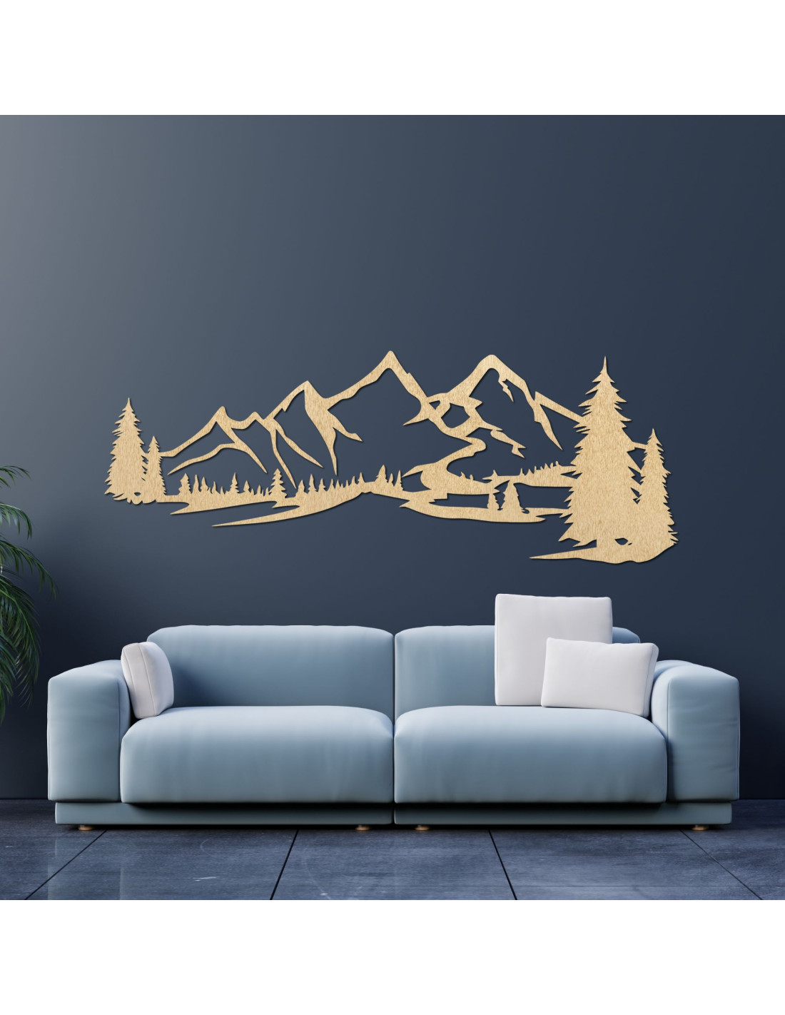 The Mountains and Forest wooden decoration is a unique design element that immediately attracts attention with its detailed laser creation and natural appearance.